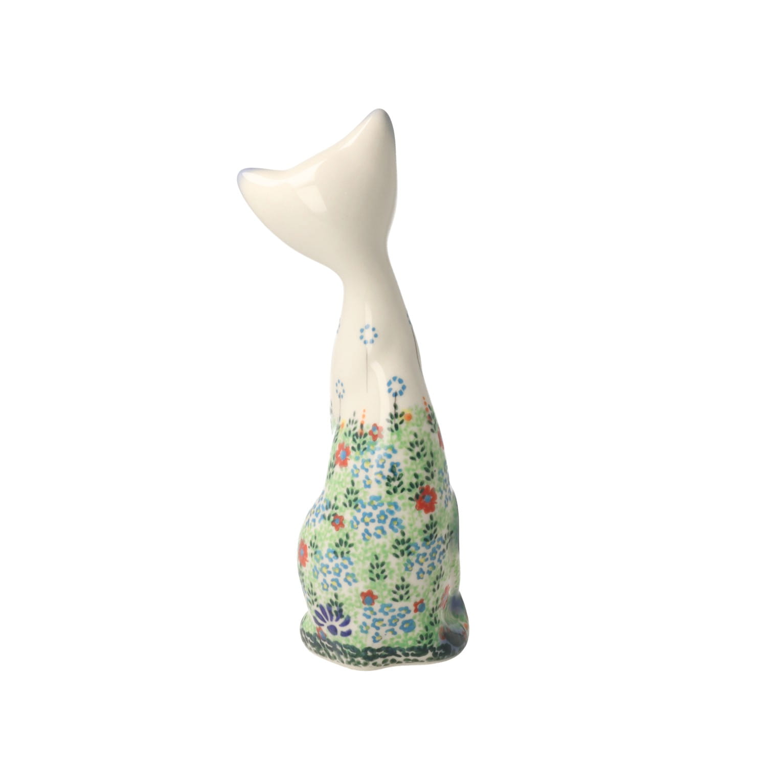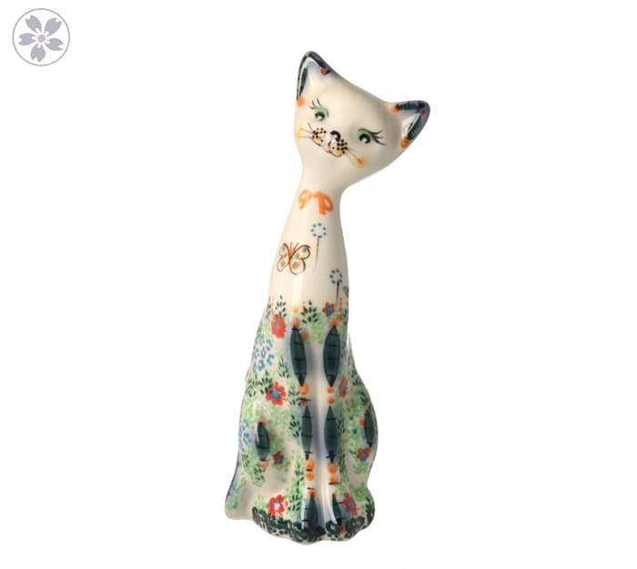 Figurka w kształcie kota. Produkt ręcznie formowany i dekorowany w Manufakturze Galia Bolesławiec.