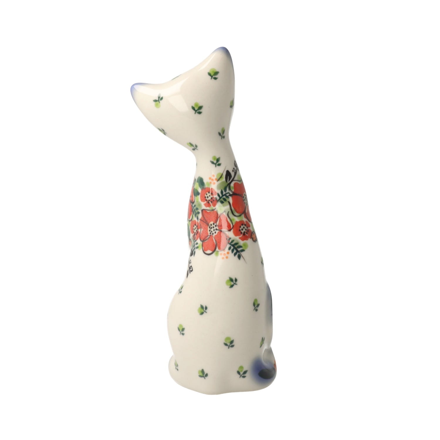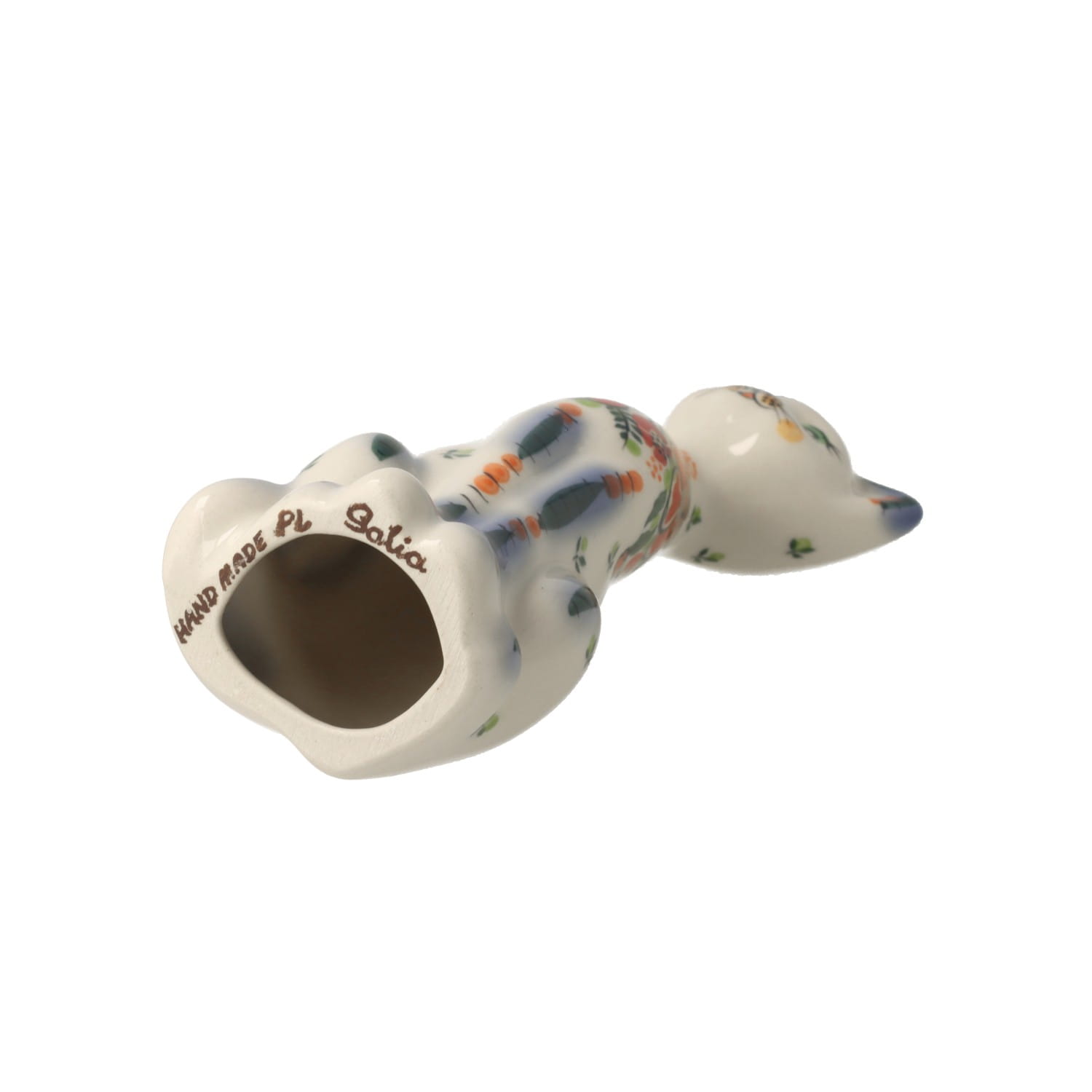 Figurka w kształcie kota. Produkt ręcznie formowany i dekorowany w Manufakturze Galia Bolesławiec.