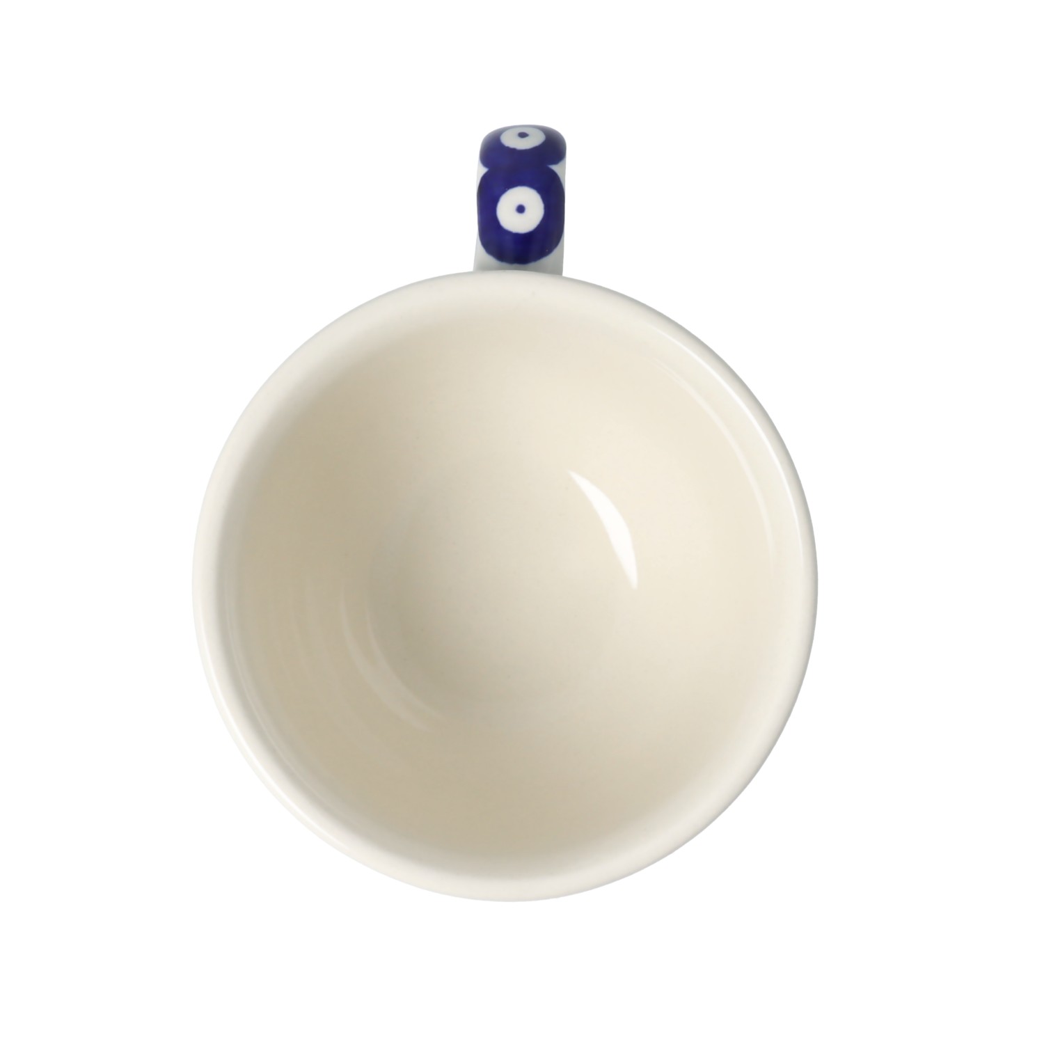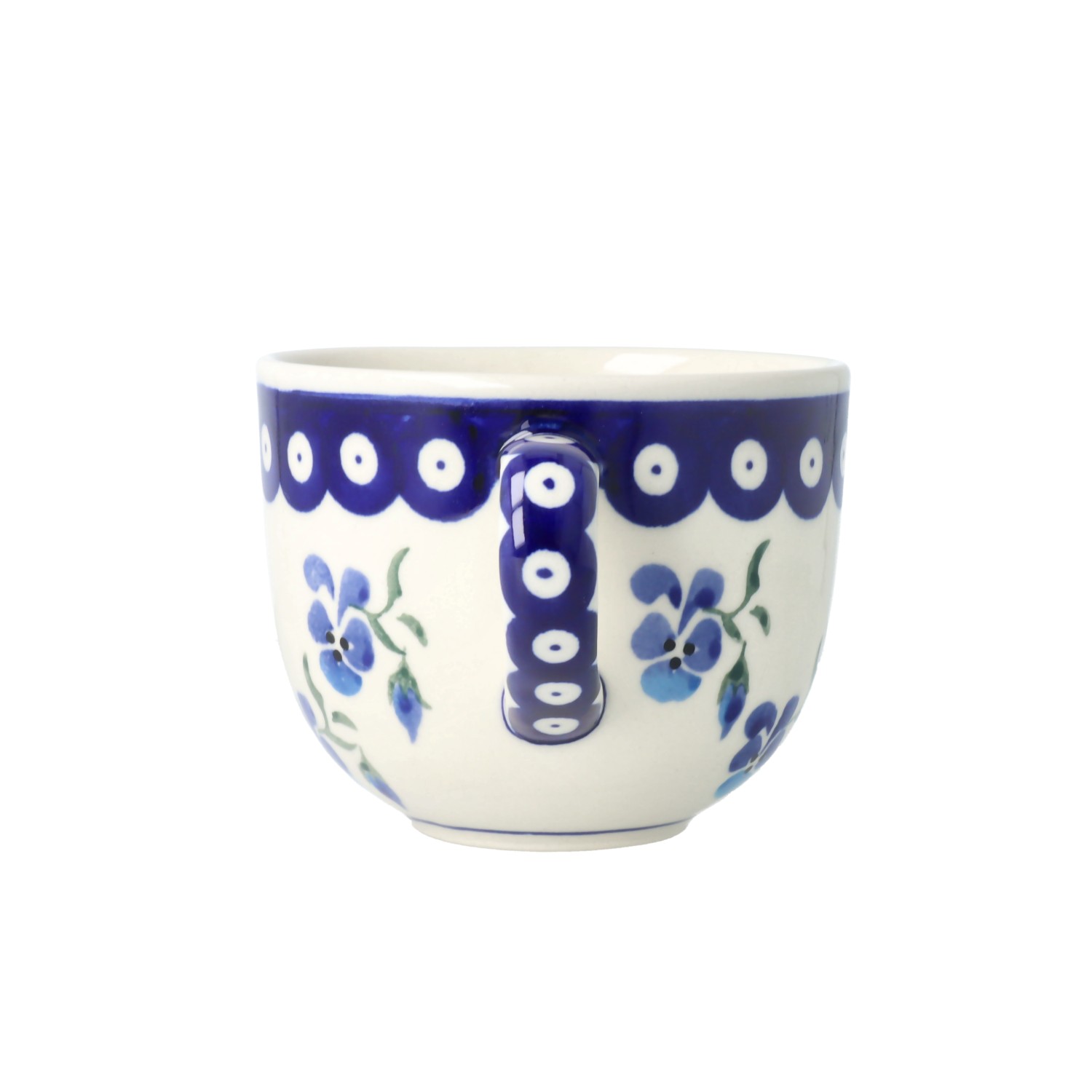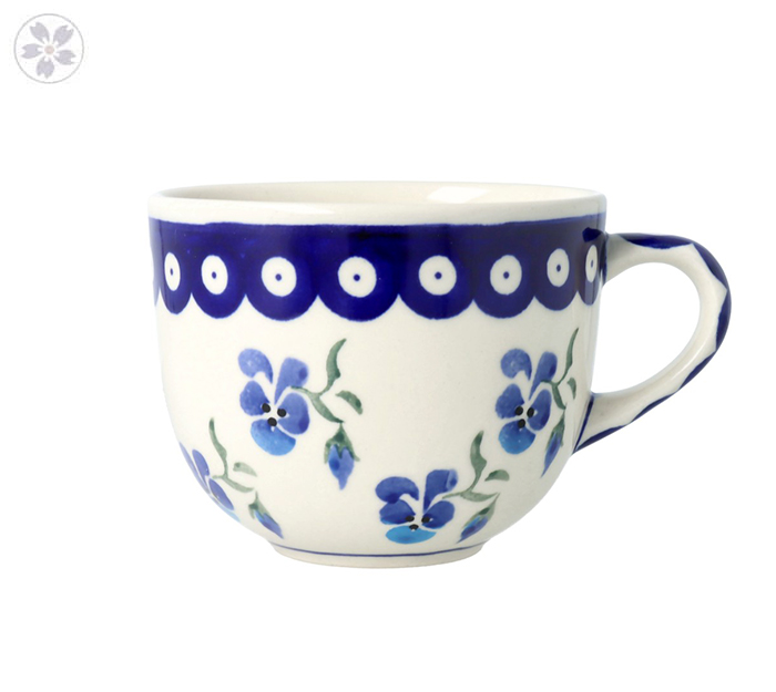 Kubek z uchem w klasycznym kształcie. Produkt ręcznie formowany i dekorowany w Zakładach Ceramicznych Bolesławiec.