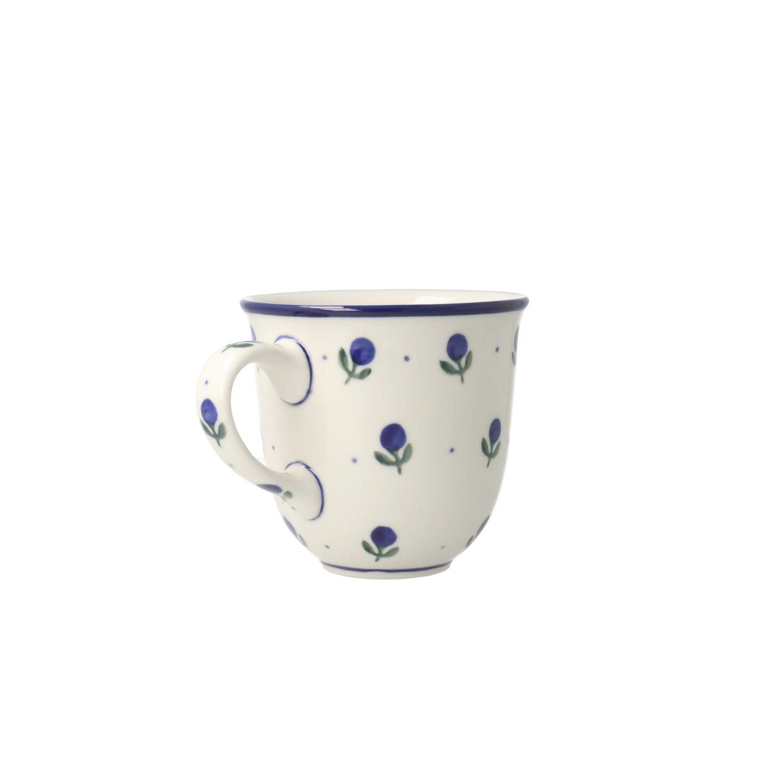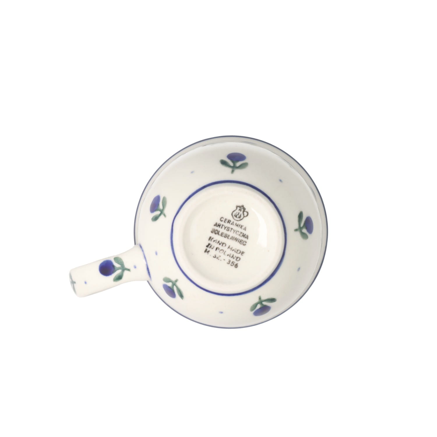 Filiżanka z profilowanym uchem. Produkt ręcznie formowany i dekorowany w Ceramice Artystycznej S.R.A. Bolesławiec.