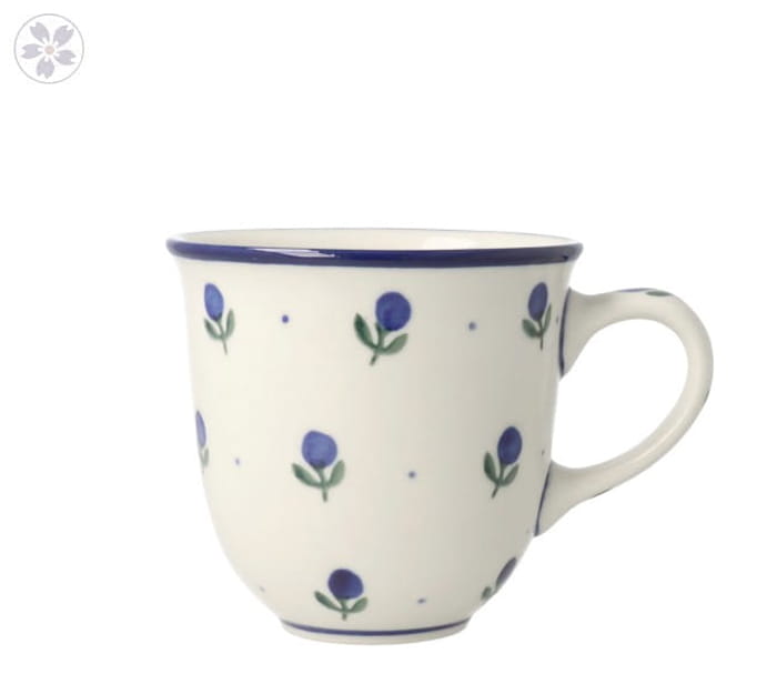 Kubek "czeski" z profilowanym uchem. Produkt ręcznie formowany i dekorowany w Ceramice Artystycznej S.R.A. Bolesławiec.