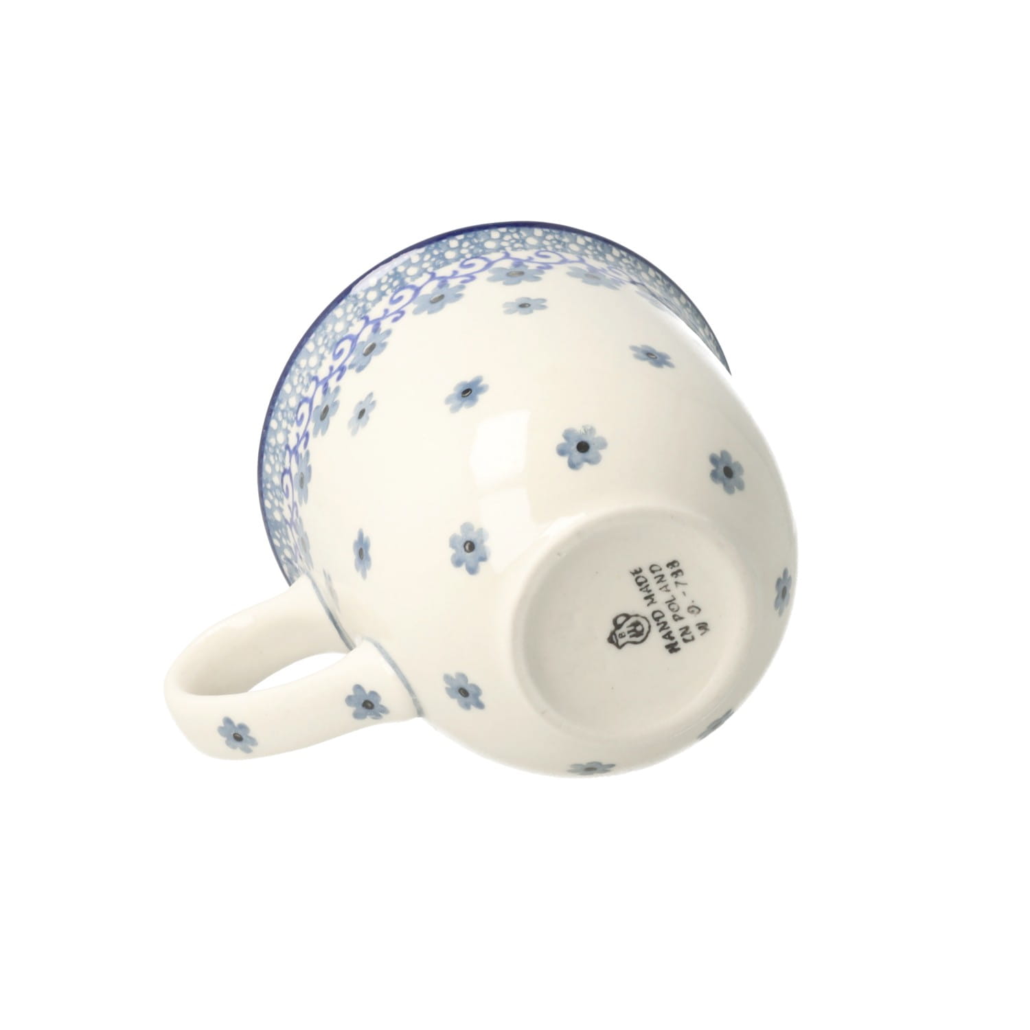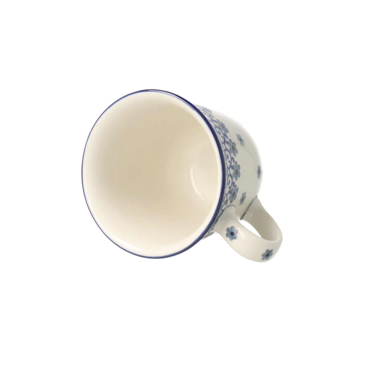 Kubek z profilowanym uchem. Produkt ręcznie formowany i dekorowany w Ceramice Artystycznej S.R.A. Bolesławiec.