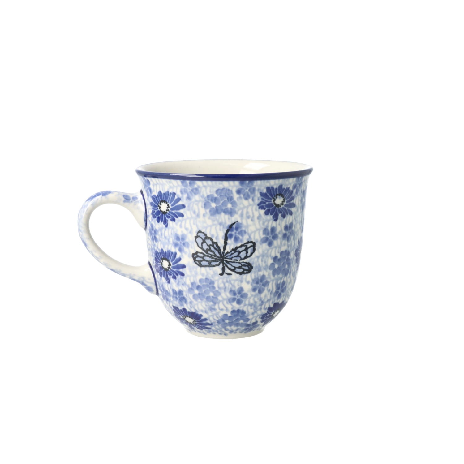 Klasyczny kubek z profilowanym uchem. Produkt ręcznie formowany i dekorowany w Ceramice Artystycznej S.R.A. Bolesławiec.