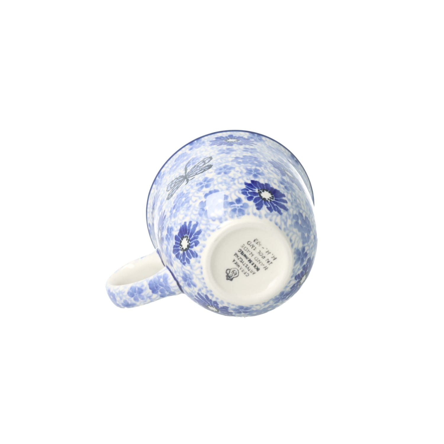 Duży kubek z profilowanym uchem. Produkt ręcznie formowany i dekorowany w Ceramice Artystycznej S.R.A. Bolesławiec.