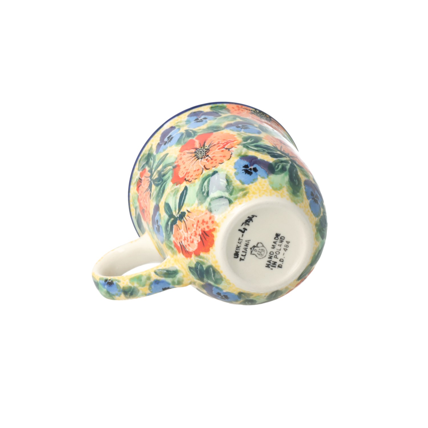 Filiżanka z profilowanym uchem. Produkt ręcznie formowany i dekorowany w Ceramice Artystycznej S.R.A. Bolesławiec.