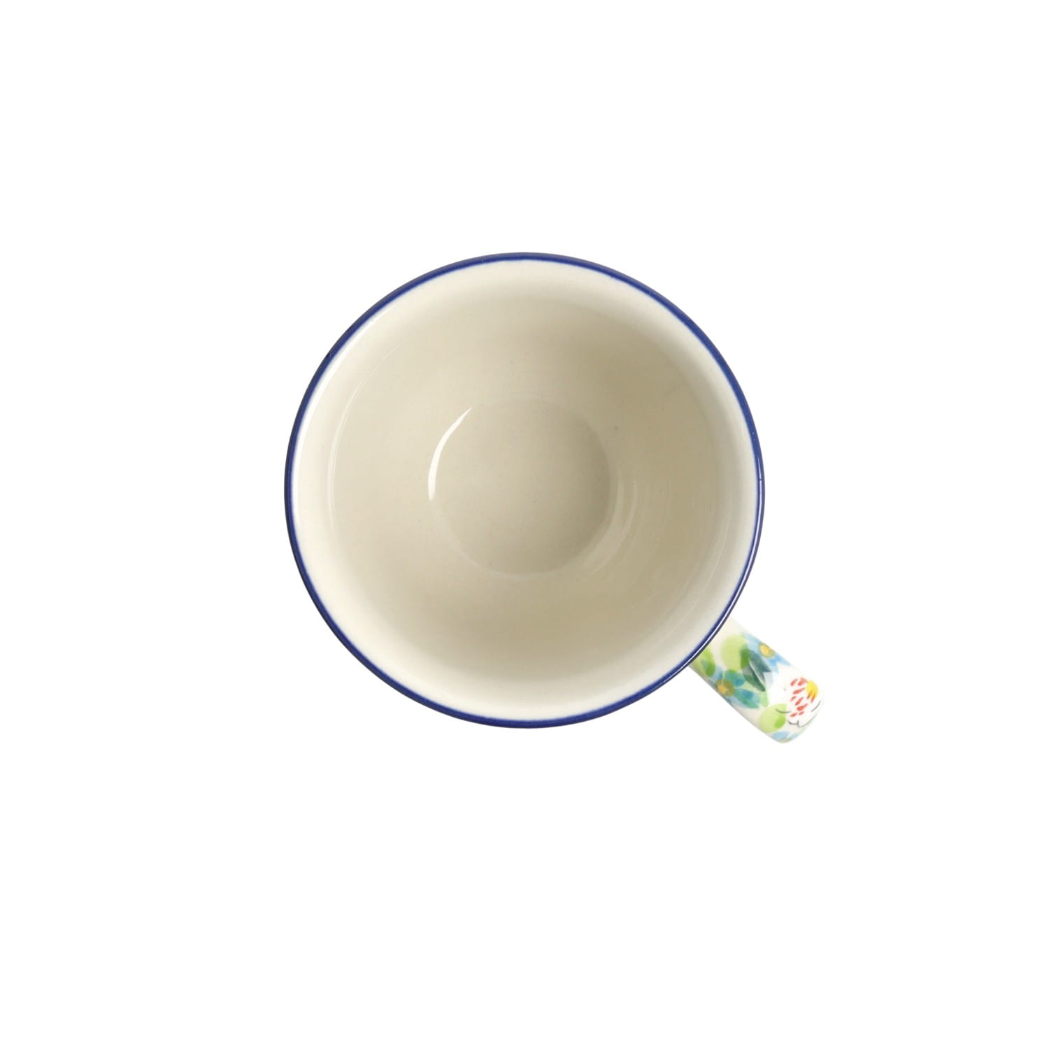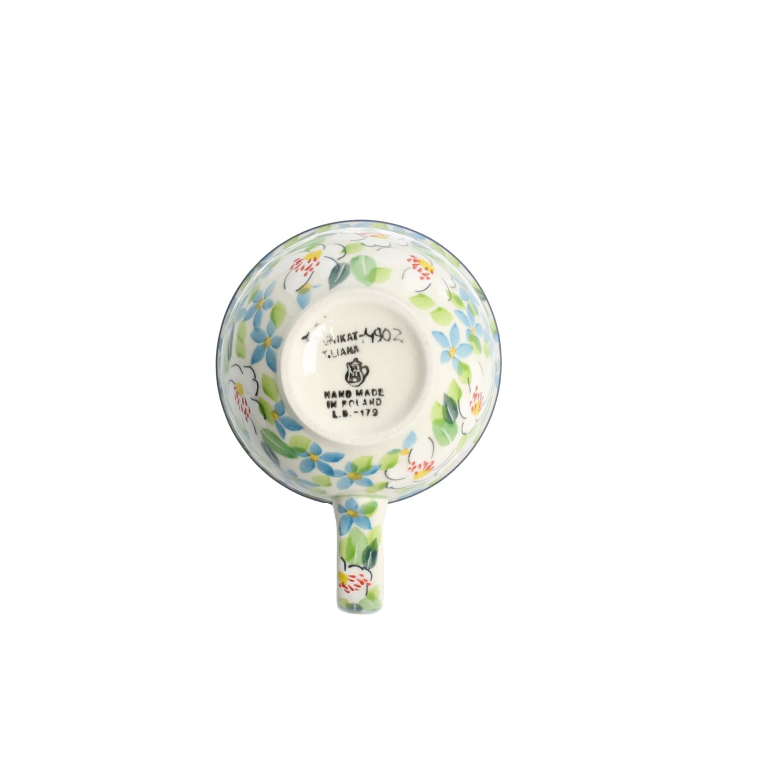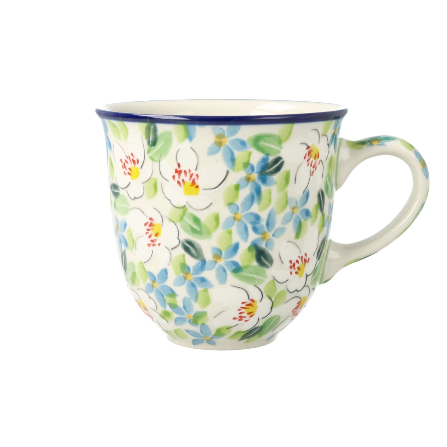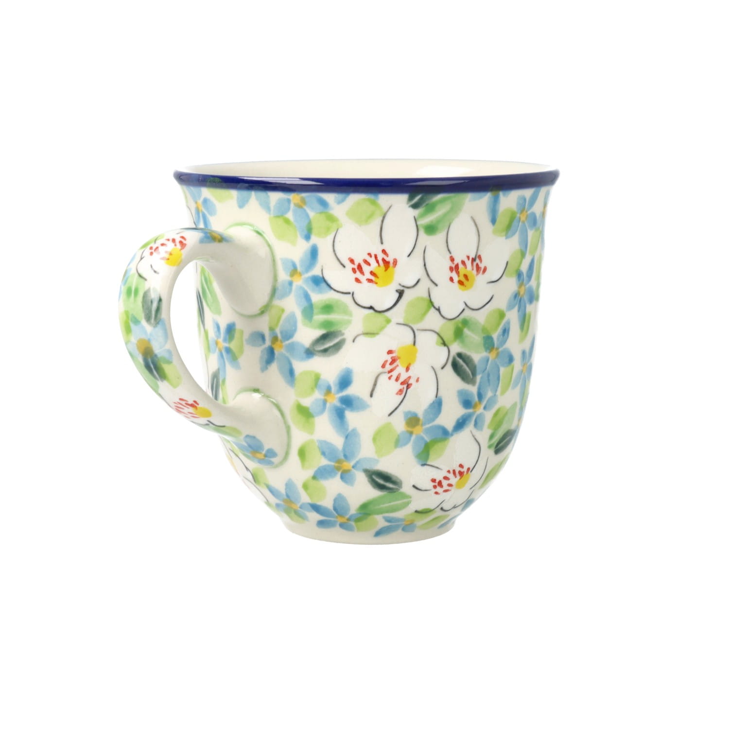 Filiżanka z profilowanym uchem. Produkt ręcznie formowany i dekorowany w Ceramice Artystycznej S.R.A. Bolesławiec.