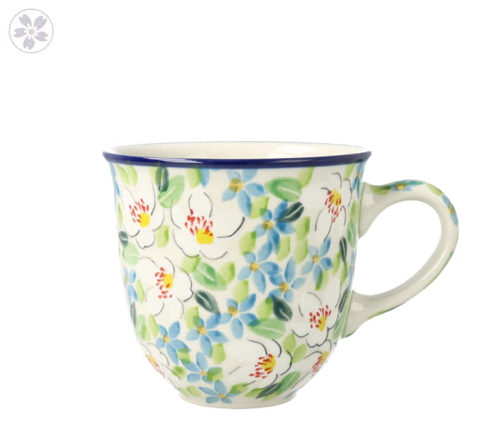 Kubek "czeski" z profilowanym uchem. Produkt ręcznie formowany i dekorowany w Ceramice Artystycznej S.R.A. Bolesławiec.