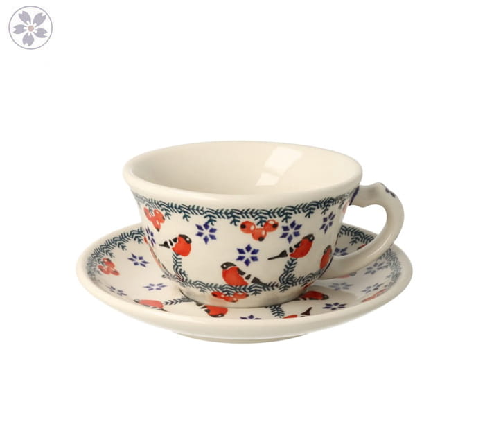 Filiżanka ze spodkiem "tulipan". Produkt ręcznie formowany i dekorowany w Zakładach Ceramicznych Bolesławiec.