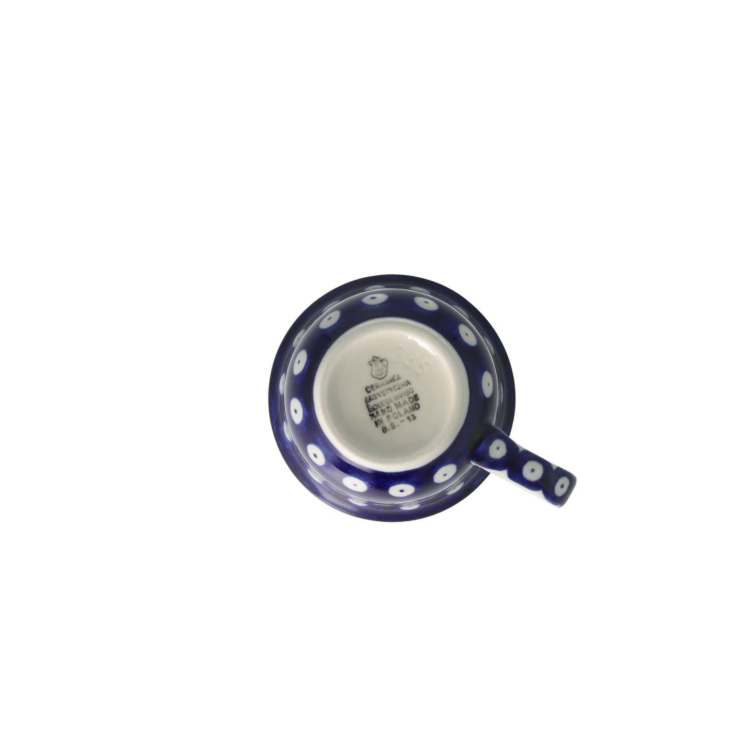 Filiżanka z profilowanym uchem. Produkt ręcznie formowany i dekorowany w Ceramice Artystycznej S.R.A. Bolesławiec.