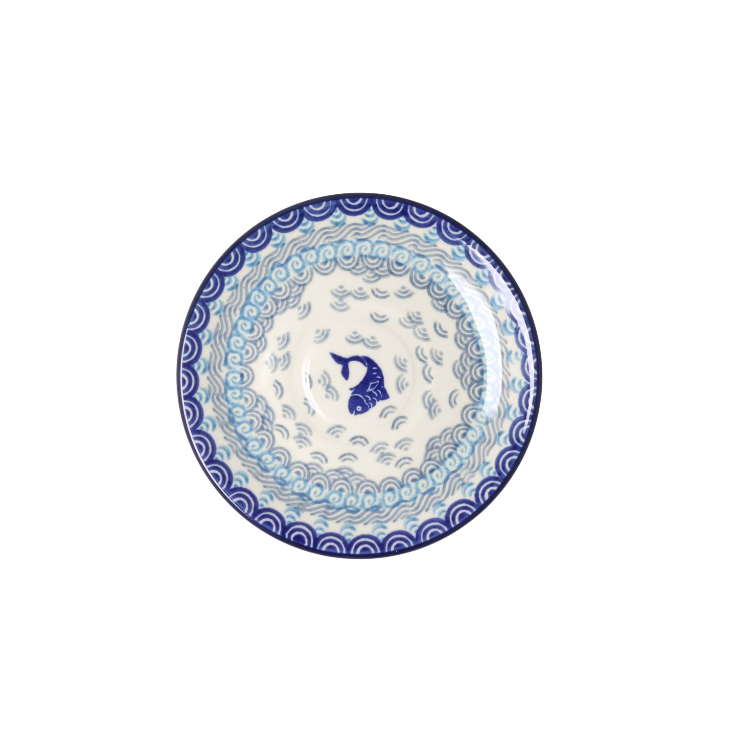Naczynia w tym wzorze dekorowane są ręcznie, za pomocą stempli i pędzla.