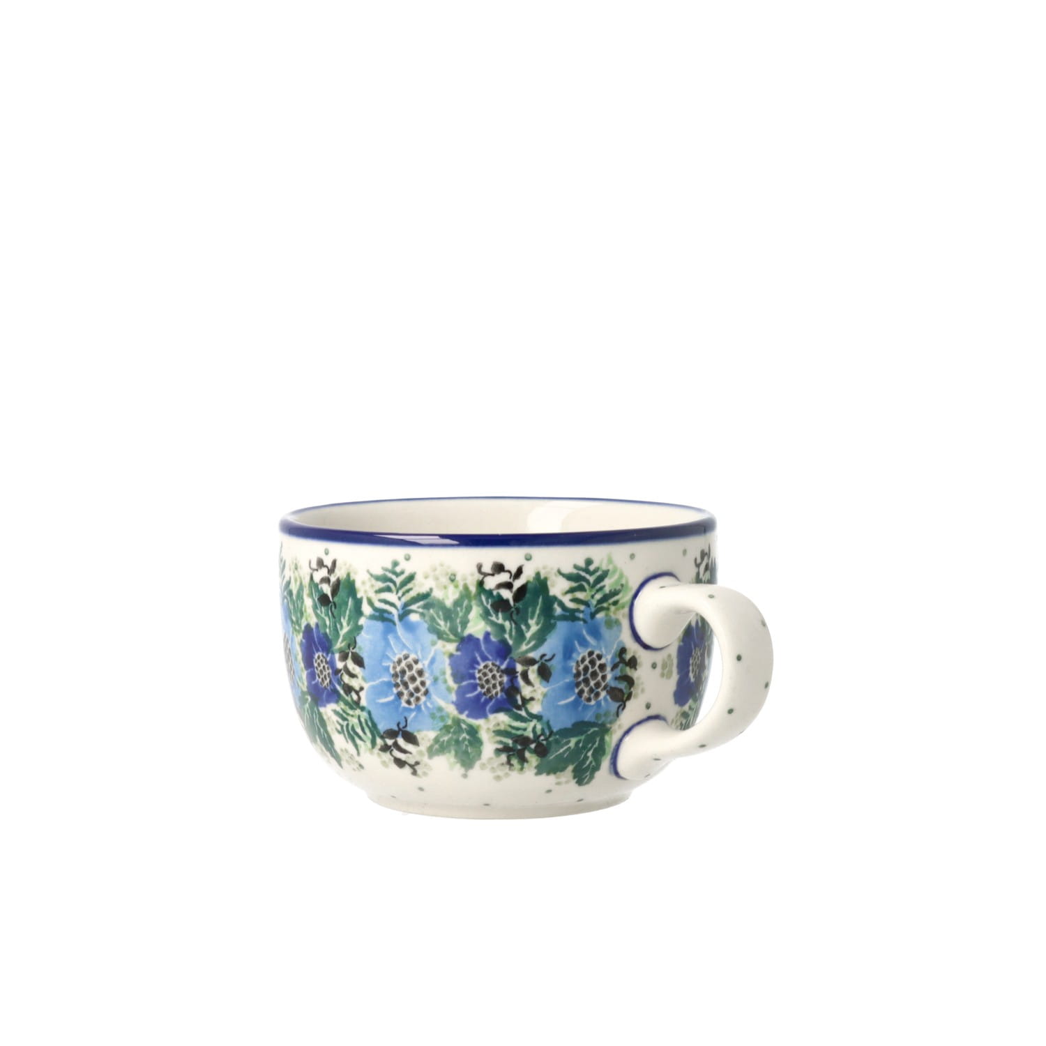 Filiżanka z profilowanym uchem. Produkt ręcznie formowany i dekorowany w Ceramice Artystycznej S.R.A. Bolesławiec.
