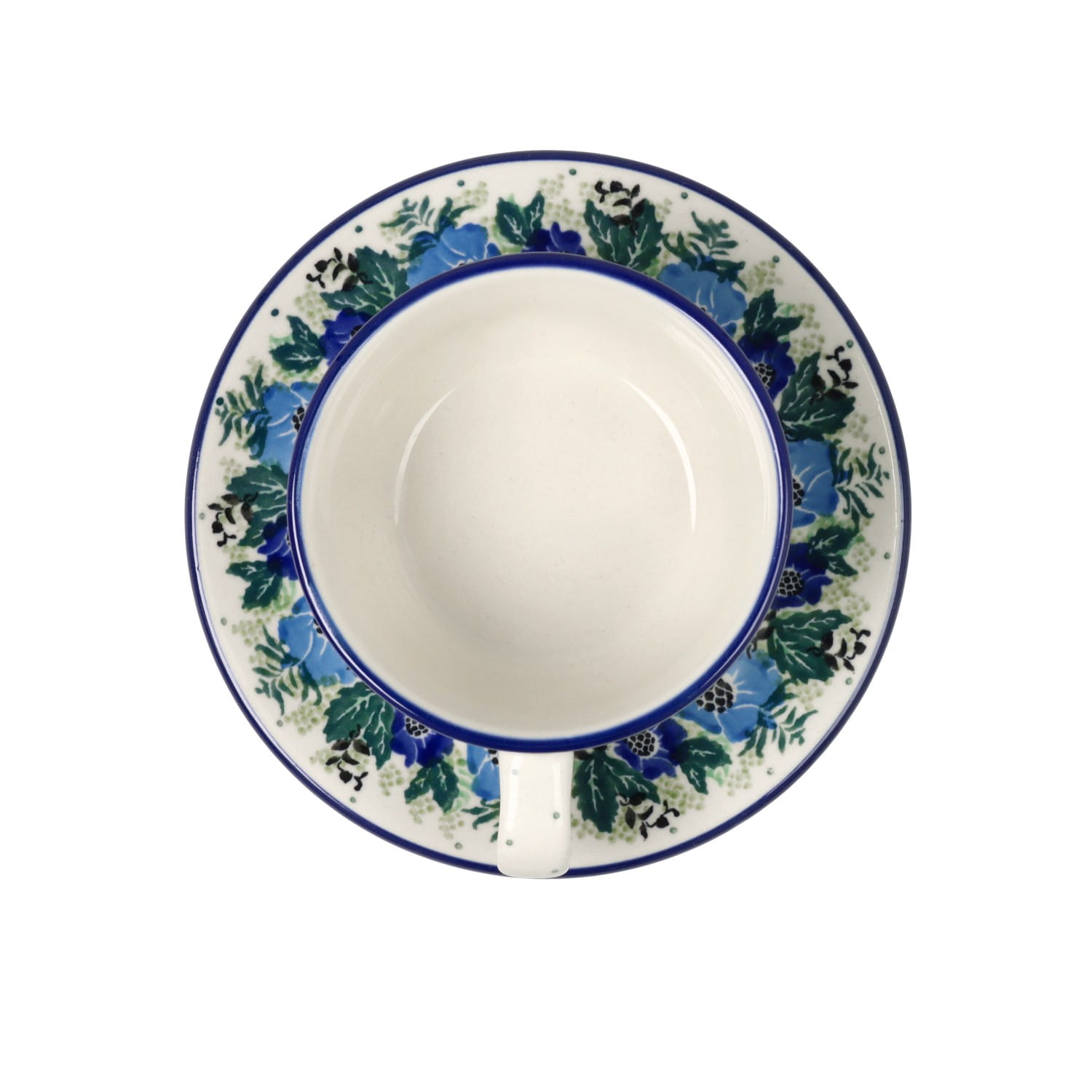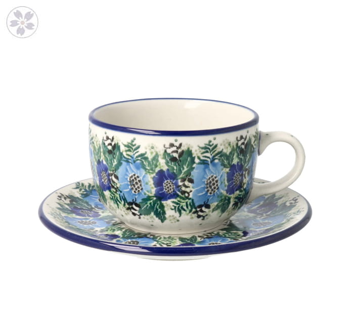 Filiżanka ze spodkiem "tulipan". Produkt ręcznie formowany i dekorowany w Zakładach Ceramicznych Bolesławiec.