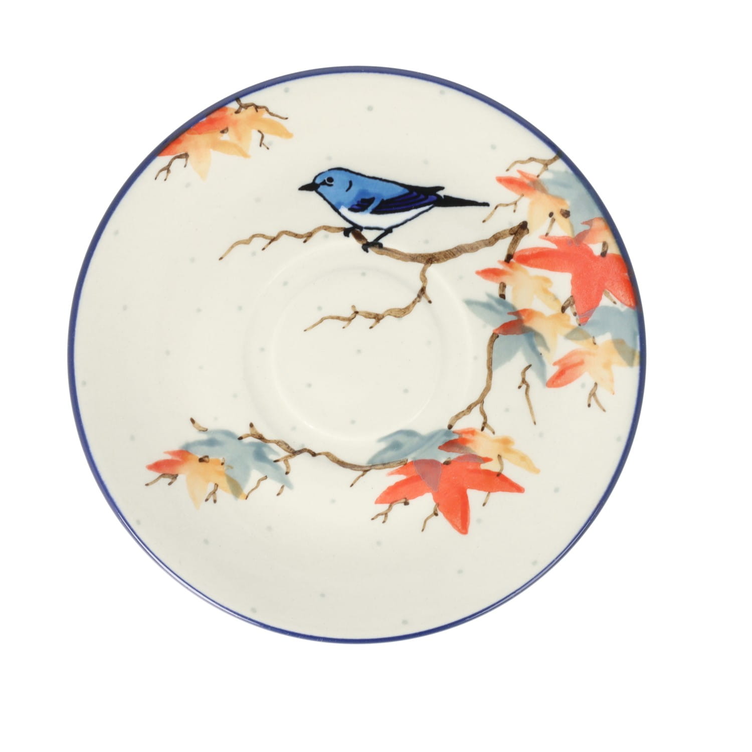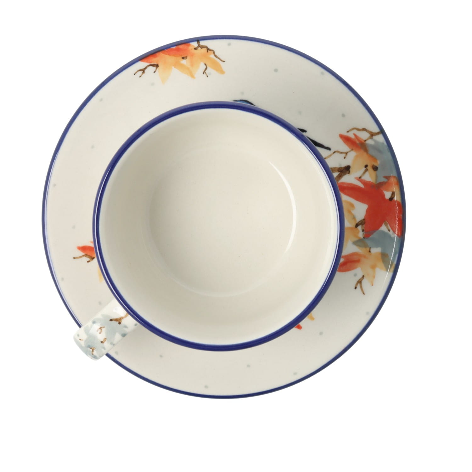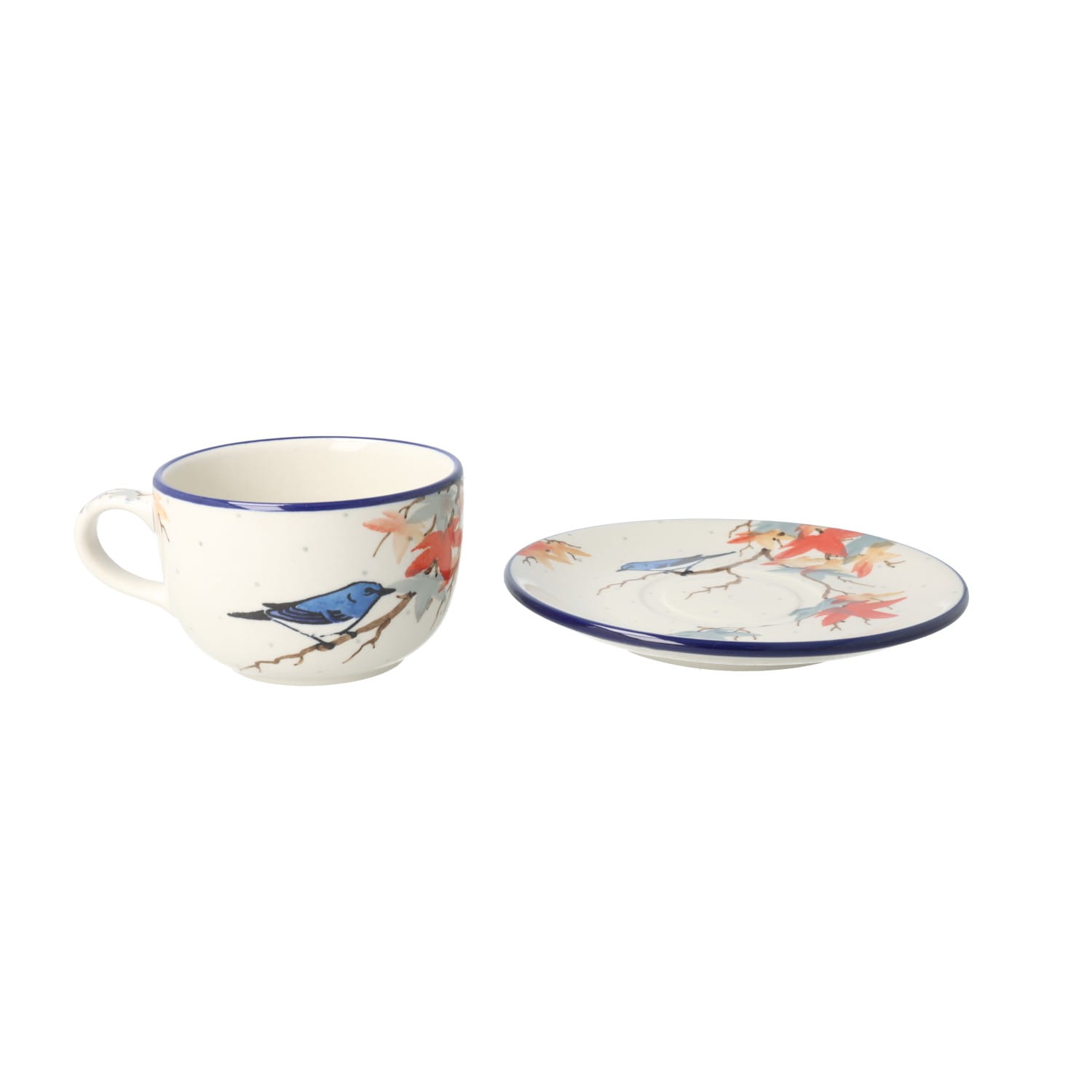 Filiżanka ze spodkiem w klasycznym kształcie. Produkt ręcznie formowany i dekorowany w Zakładach Ceramicznych Bolesławiec.