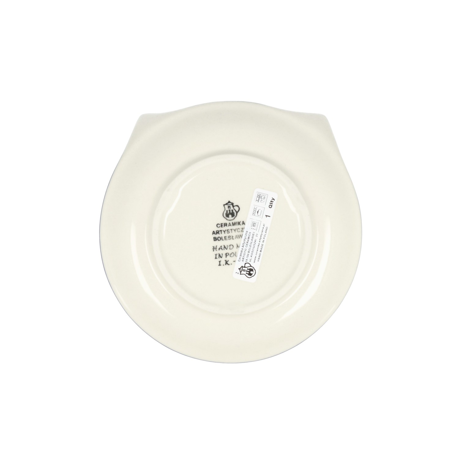 Mały talerzyk-spodek. Produkt ręcznie formowany i dekorowany w Ceramice Artystycznej S.R.A. Bolesławiec.