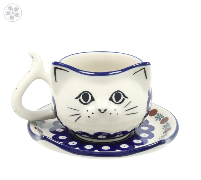 Uroczy kształt filiżanki- głowa kota oraz ucho jak ogonek postawione na kocim spodku sprawią, że we wnętrzach zagości oryginalna ozdoba.