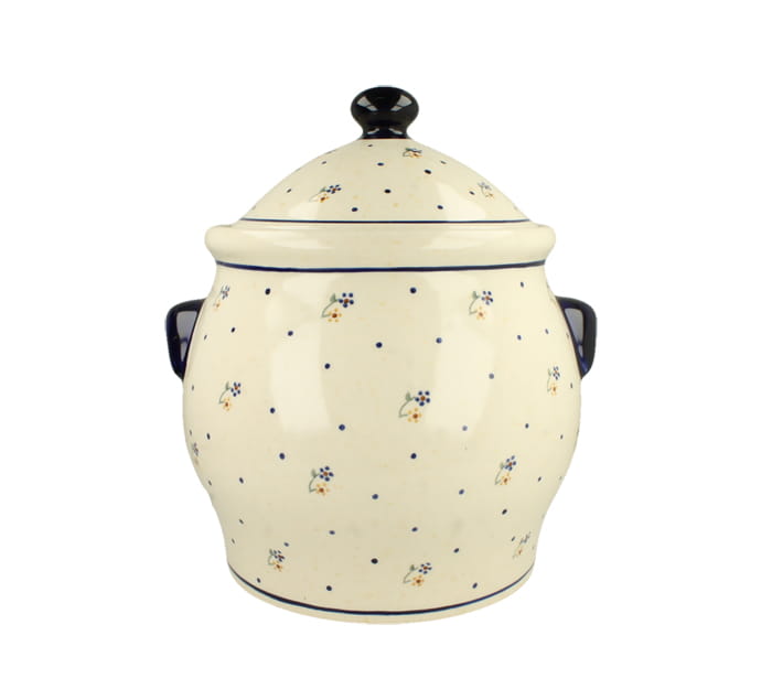 Pojemnik- garnuszek z pokrywką. Produkt ręcznie formowany i dekorowany w Zakładach Ceramicznych Bolesławiec.