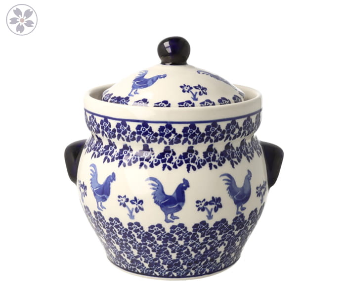 Garnek do kiszenia, posiada pokrywkę i kołnierz. Produkt ręcznie formowany i dekorowany w Zakładach Ceramicznych Bolesławiec.