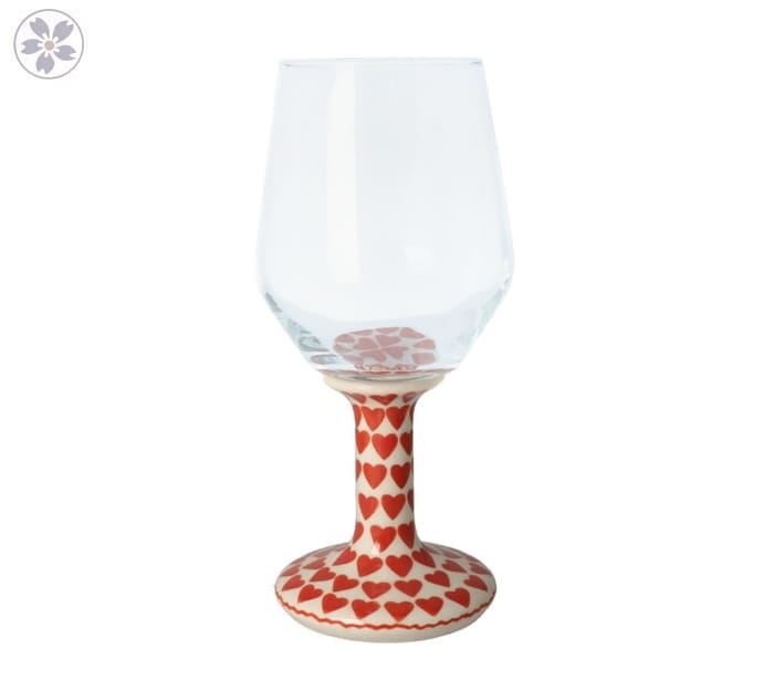 Kieliszek Galia Bolesławiec stworzony szczególnie do degustacji czerwonych win. Połączenie szklanej czarki kieliszka z ręcznie malowaną, ceramiczną nóżką, nadaje mu niepowtarzalnego uroku. Eleganckie i praktyczne naczynia przydadzą się w każdym domu. Używane jako część zastawy stołowej lub samodzielny prezent. Odkryj przyjemność z posiadania bolesławieckiej ceramiki i stwórz własną kolekcję.