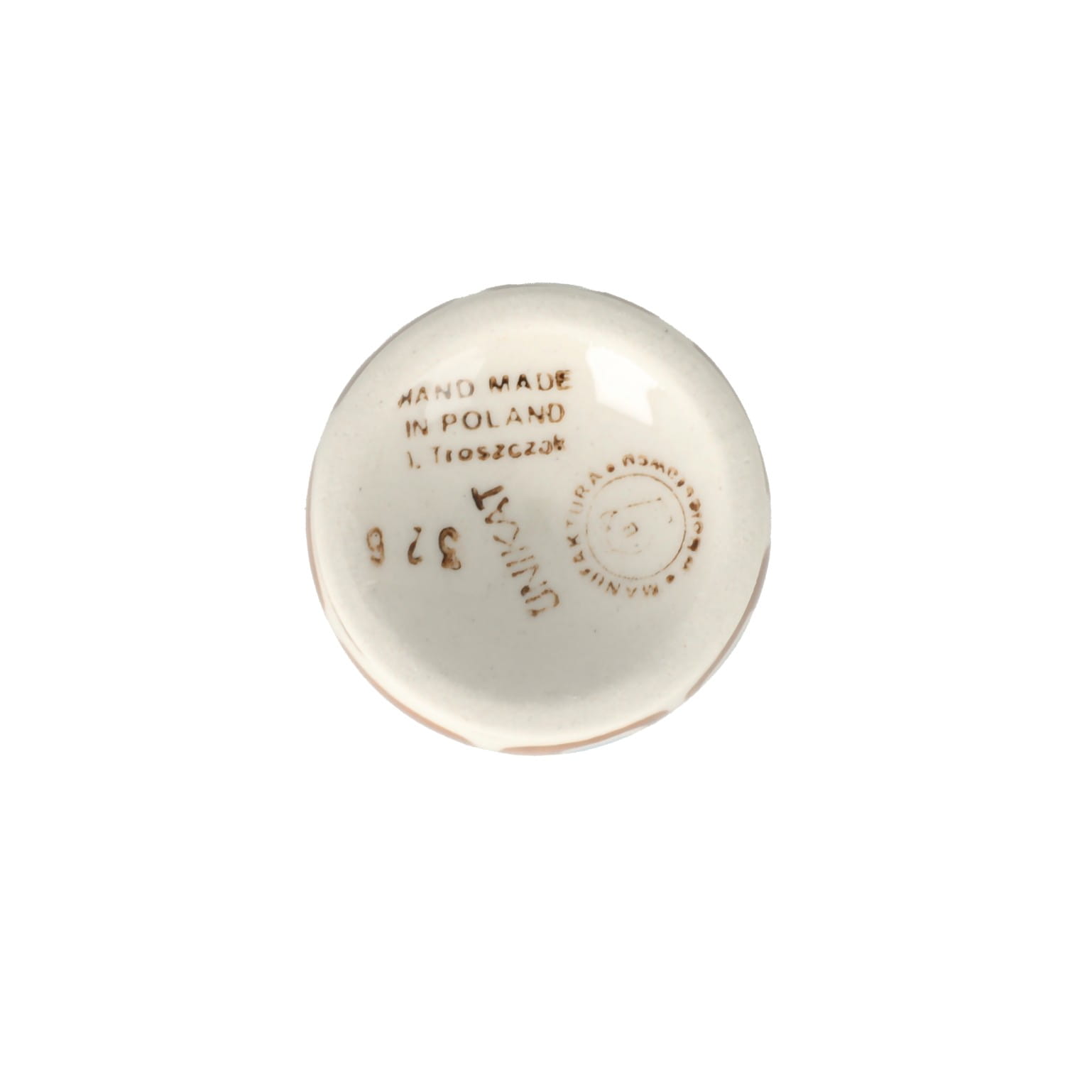 Produkt wykonany z bolesławieckiej glinki ceramicznej, ręcznie formowany i dekorowany przez artystę Manufaktury w Bolesławcu.