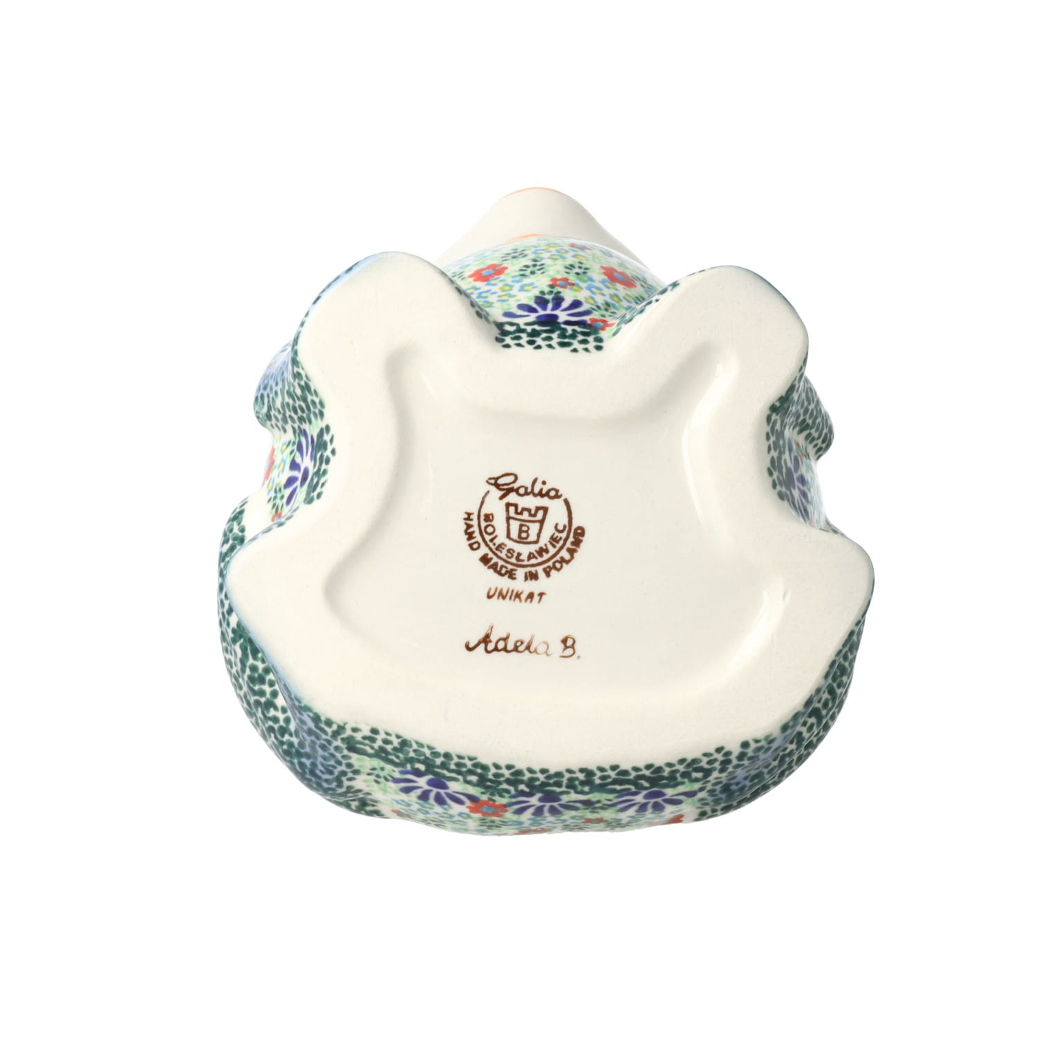 Produkt wykonany z glinki ceramicznej, ręcznie formowany i dekorowany w Manufakturze Galia Bolesławcu.