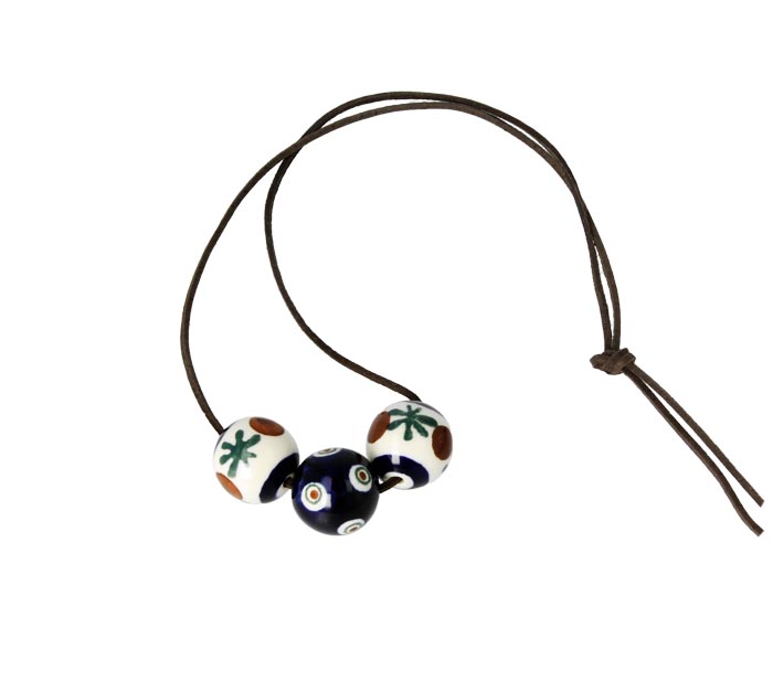 Koralik ceramiczny. Produkt ręcznie formowany i dekorowany w Zakładach Ceramicznych Bolesławiec.