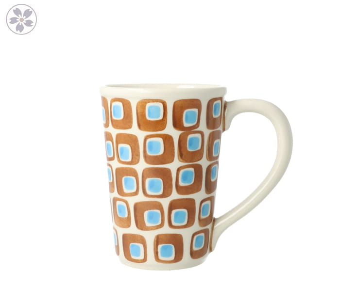 Kubek z uchem. Produkt ręcznie formowany i dekorowany w Manufakturze w Bolesławcu.