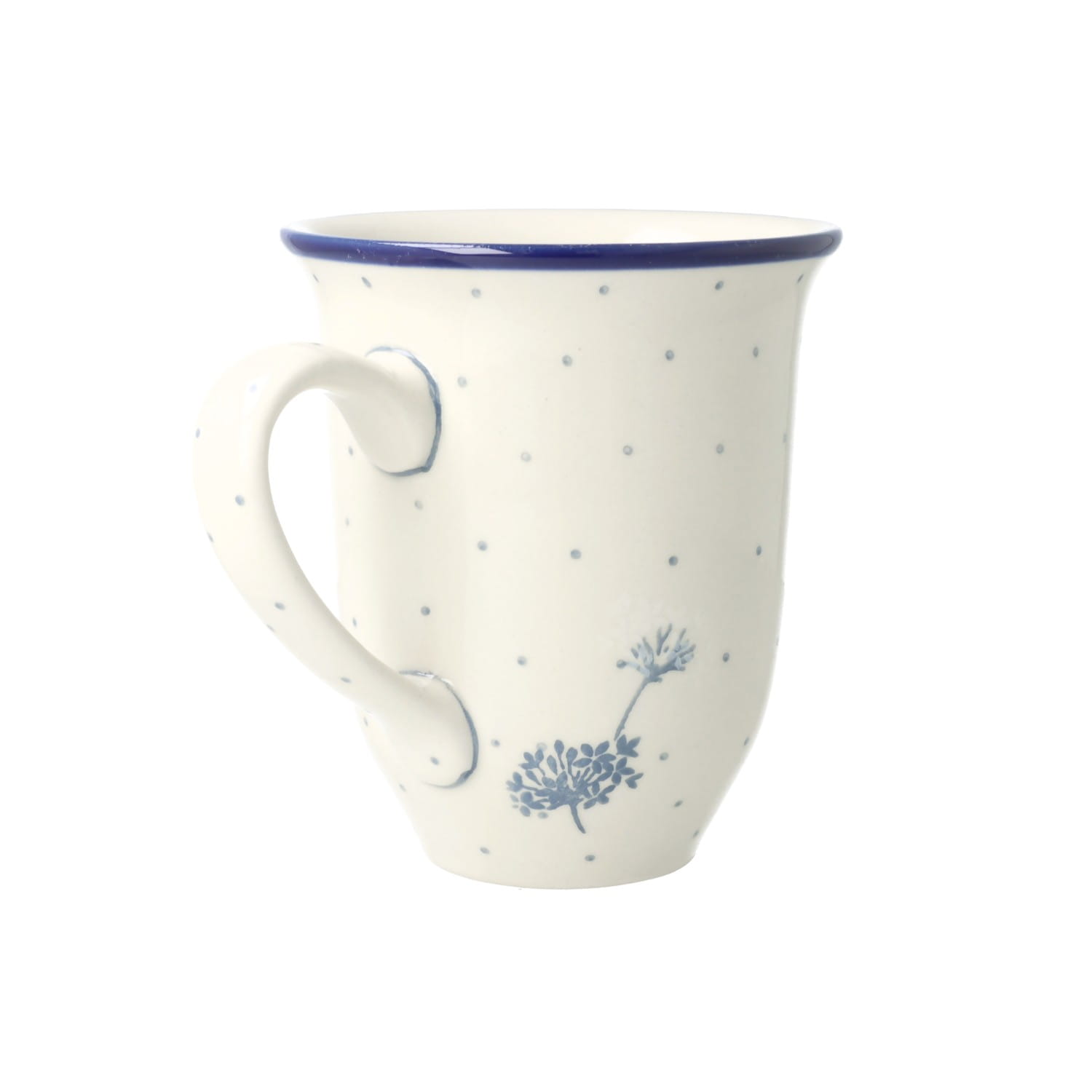 Kubek z profilowanym uchem. Produkt ręcznie formowany i dekorowany w Ceramice Artystycznej S.R.A. Bolesławiec.