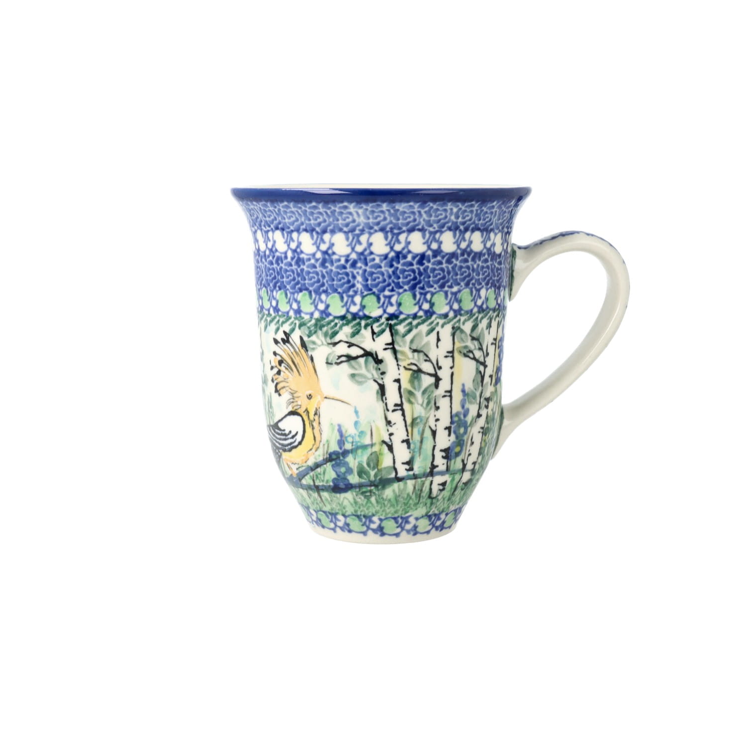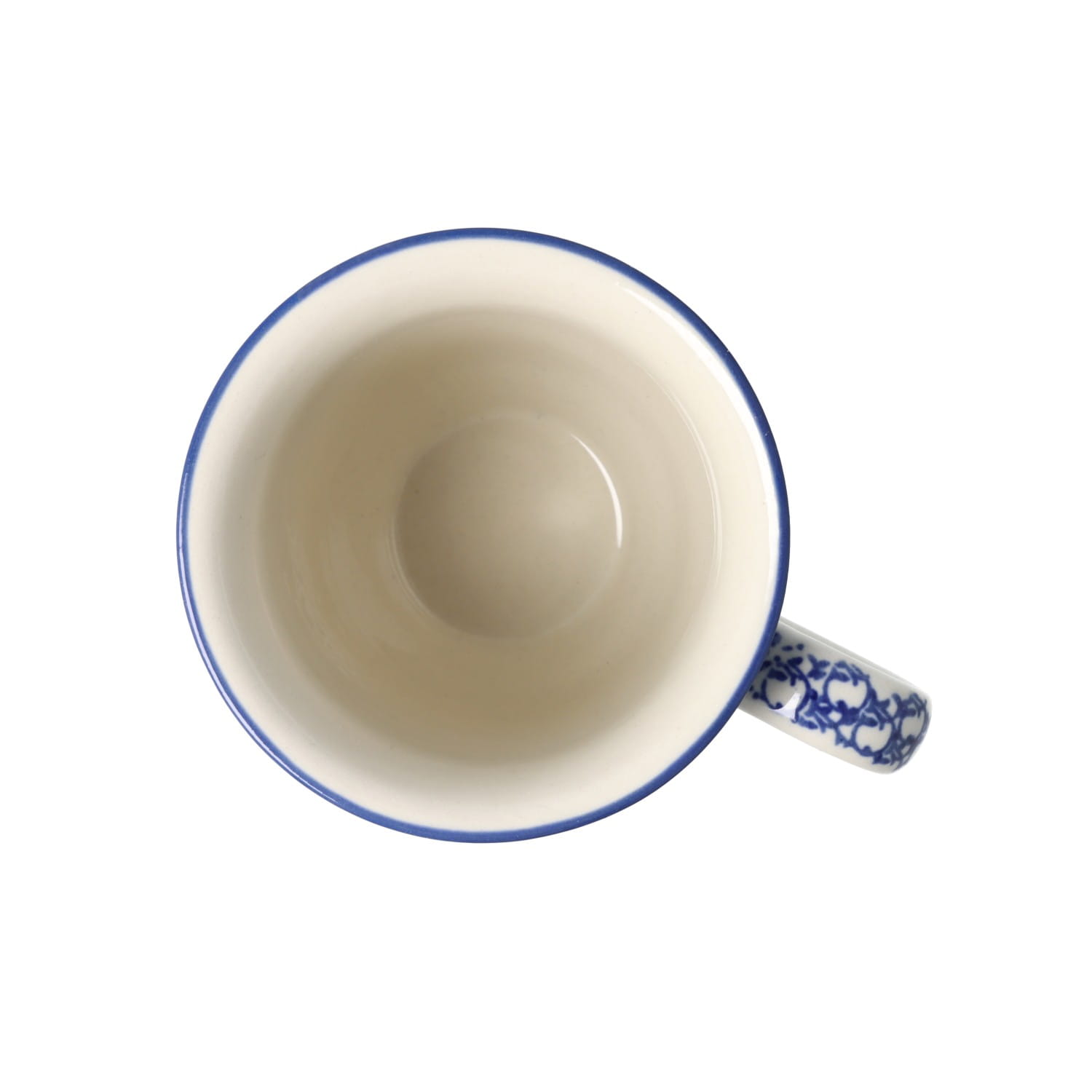 Kubek z profilowanym uchem. Produkt ręcznie formowany i dekorowany w Ceramice Artystycznej S.R.A. Bolesławiec.
