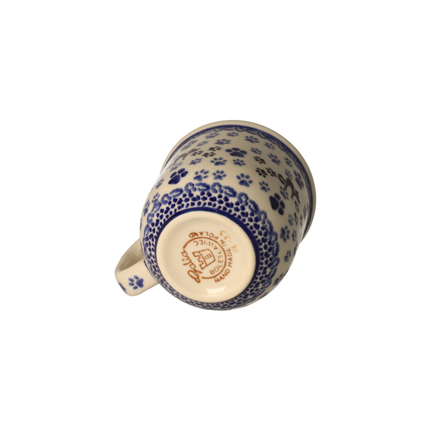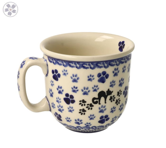 Duży kubek w kocie łapki. Produkt ręcznie formowany i dekorowany w Manufakturze Galia Bolesławiec.