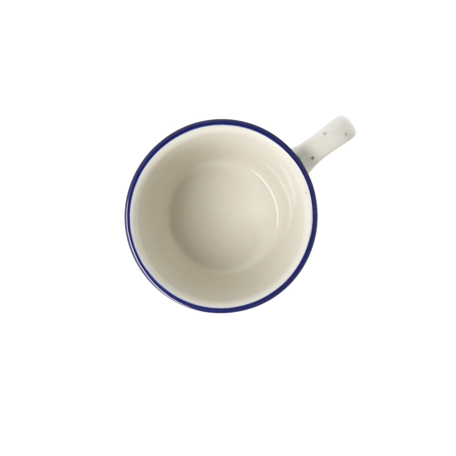 Kubek z uchem w klasycznym kształcie. Produkt ręcznie formowany i dekorowany w Zakładach Ceramicznych Bolesławiec.