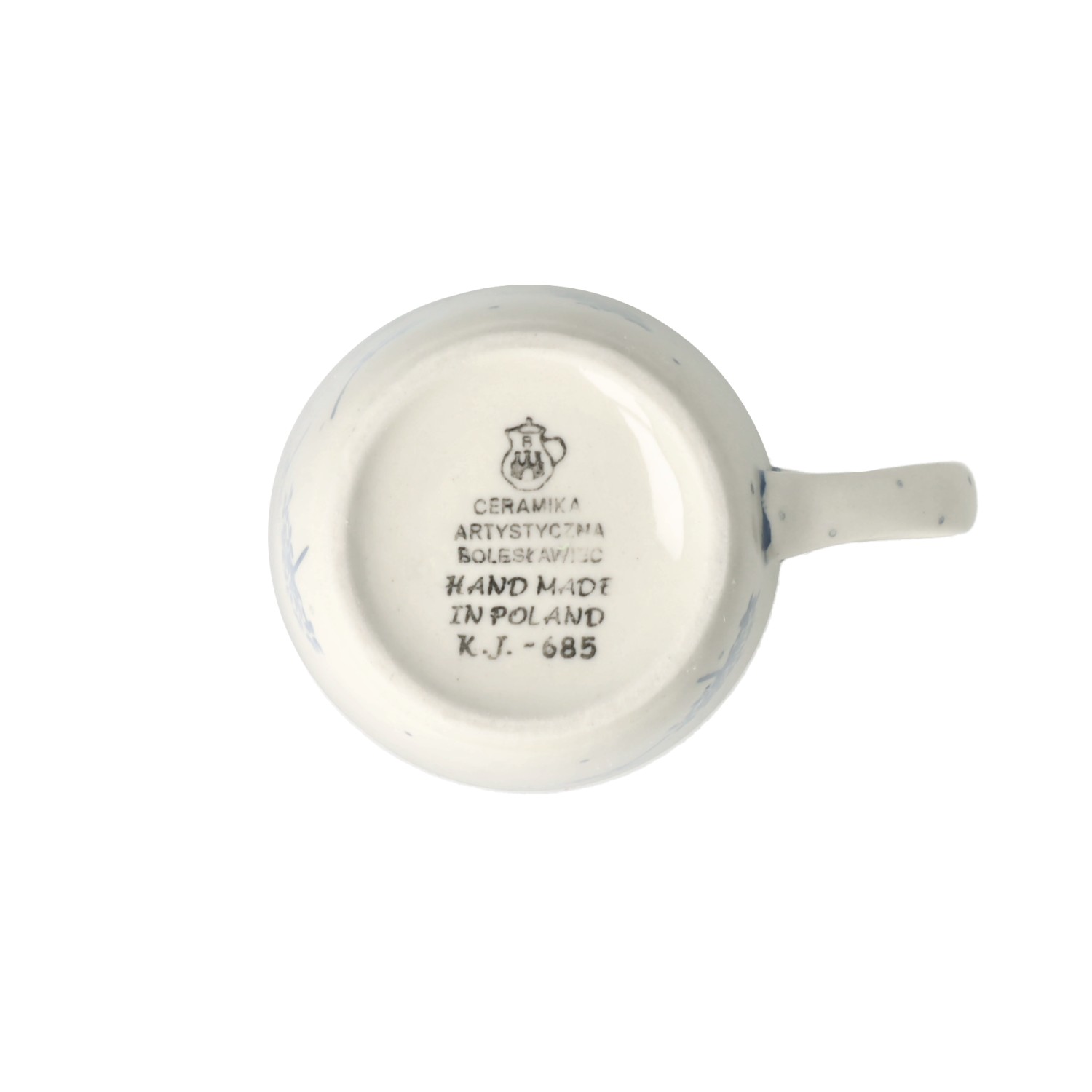 Mały kubek z profilowanym uchem. Produkt ręcznie formowany i dekorowany w Ceramice Artystycznej S.R.A. Bolesławiec.