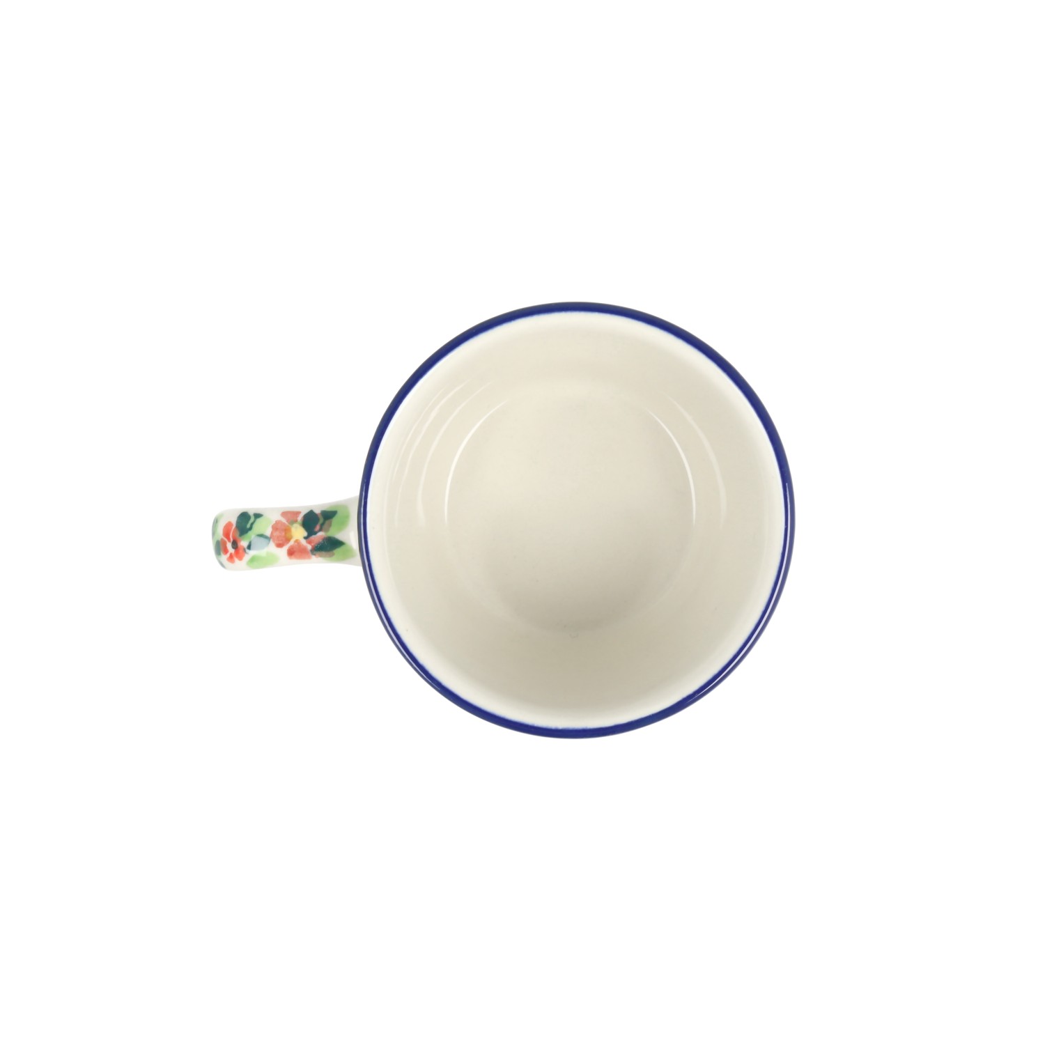 Kubek z profilowanym uchem. Produkt ręcznie formowany i dekorowany w Ceramice Artystycznej S.R.A. Bolesławiec.
