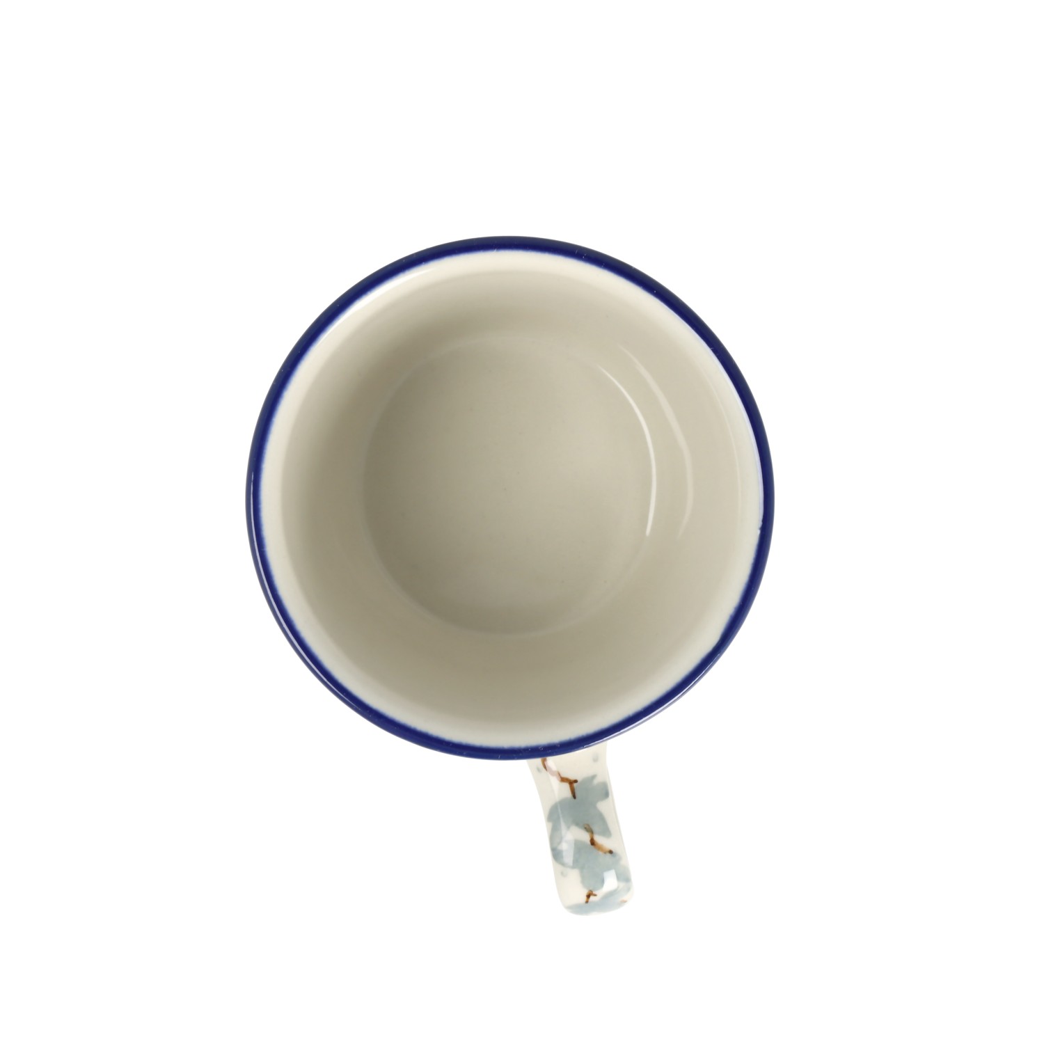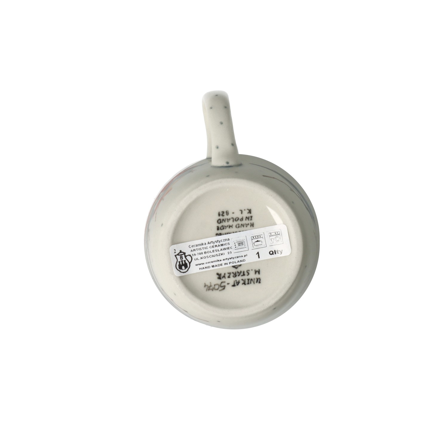 Kubek z uchem w klasycznym kształcie. Produkt ręcznie formowany i dekorowany w Zakładach Ceramicznych Bolesławiec.