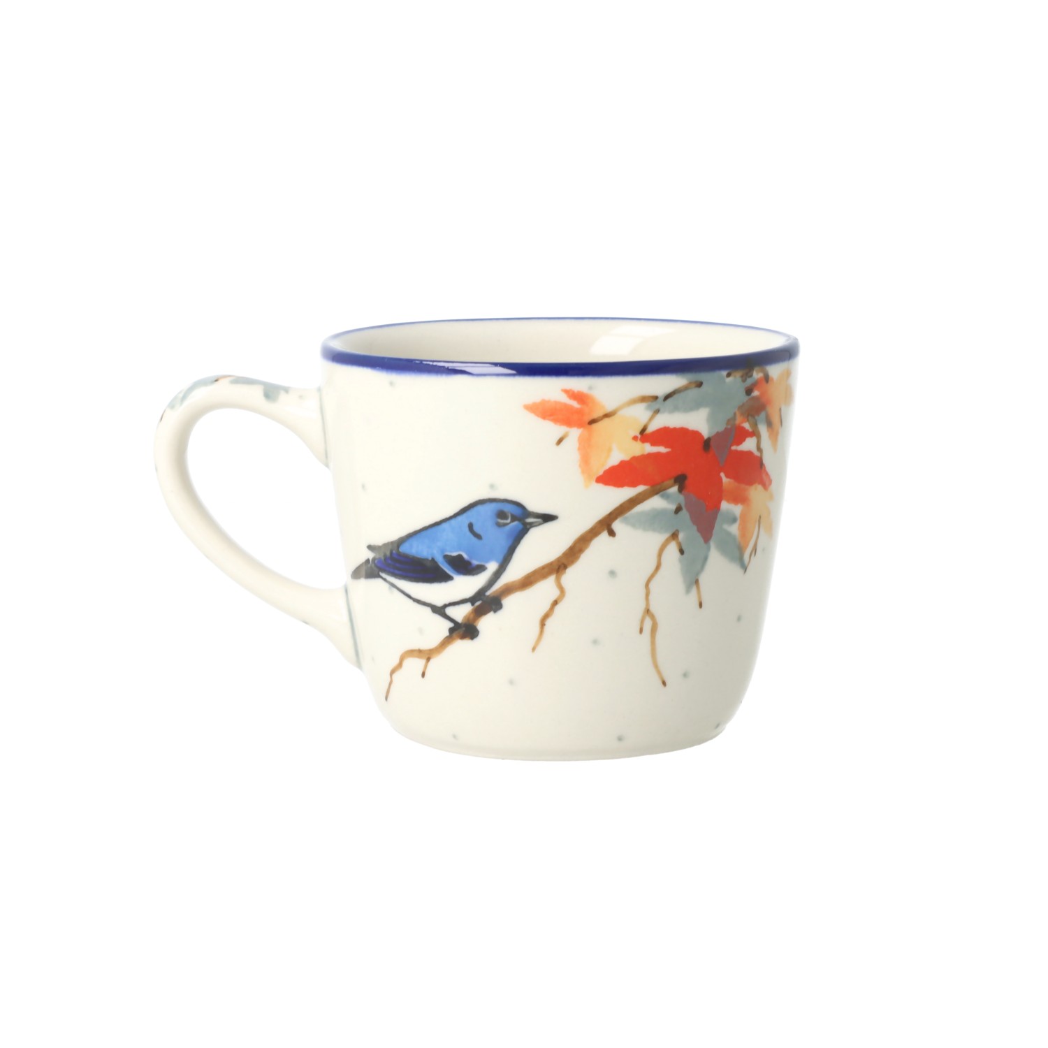 Kubek z profilowanym uchem. Produkt ręcznie formowany i dekorowany w Ceramice Artystycznej S.R.A. Bolesławiec.