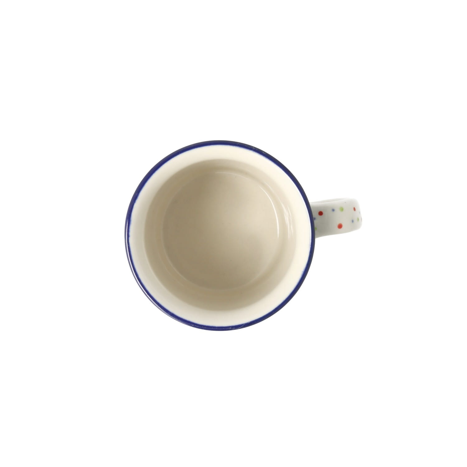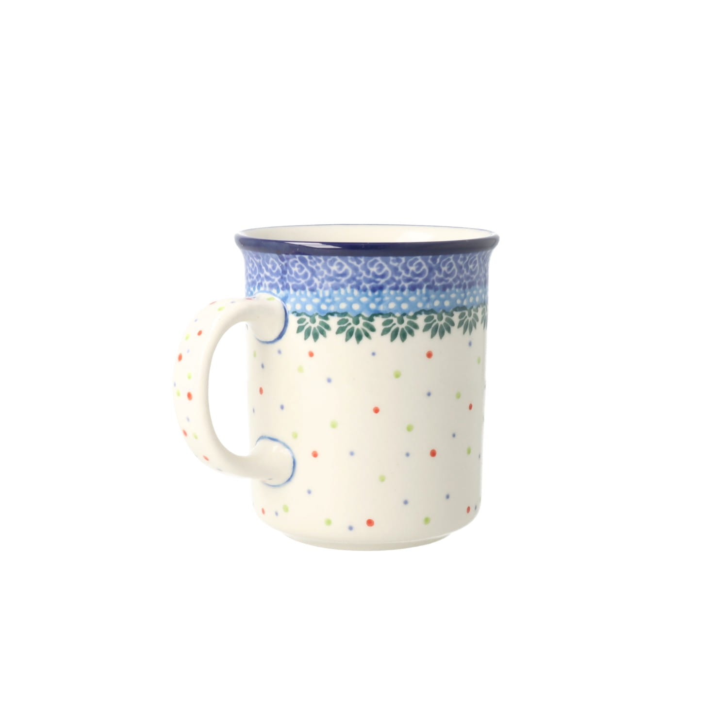 Kubek z uchem w klasycznym kształcie. Produkt ręcznie formowany i dekorowany w Zakładach Ceramicznych Bolesławiec.