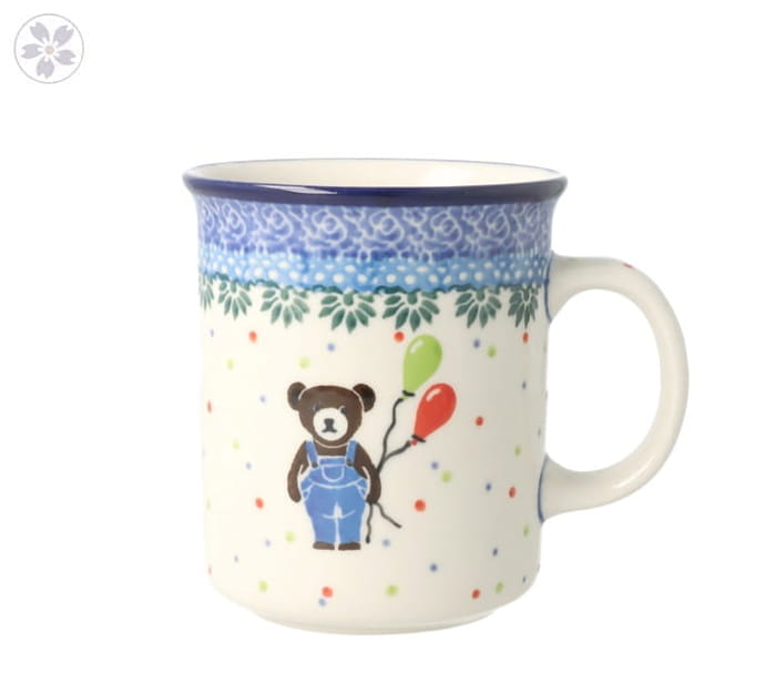 Kubek o pojemności 0,25 litra. Produkt ręcznie formowany i dekorowany w Manufakturze Galia Bolesławiec.