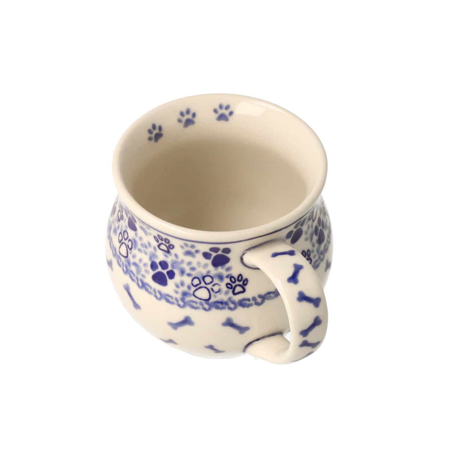 Duży kubek w kocie łapki. Produkt ręcznie formowany i dekorowany w Manufakturze Galia Bolesławiec.