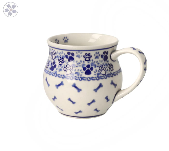 Kubek z motywem psim. Produkt ręcznie formowany i dekorowany w Manufakturze Galia Bolesławiec.