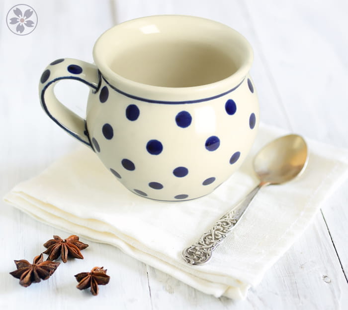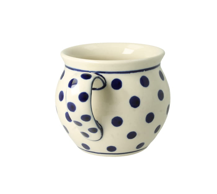 Pękaty kubek z uchem, w klasycznym kształcie. Produkt ręcznie formowany i dekorowany w Zakładach Ceramicznych Bolesławiec.