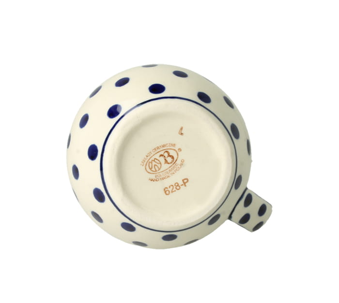 Kubek z uchem w klasycznym kształcie. Produkt ręcznie formowany i dekorowany w Zakładach Ceramicznych Bolesławiec.