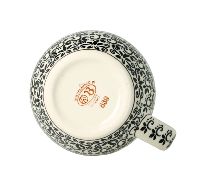 Klasyczny kubek z profilowanym uszkiem. Produkt ręcznie formowany i dekorowany w Zakładach Ceramicznych Bolesławiec.