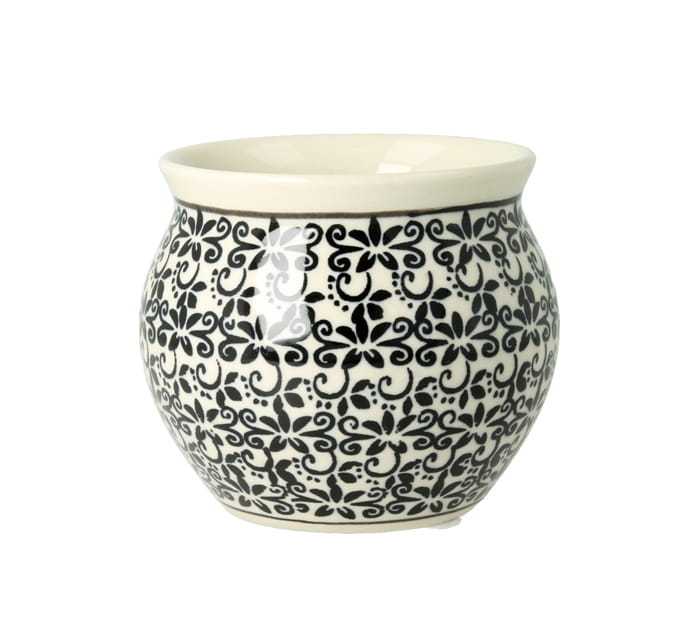Mała, okrągła cukiernica z otworem na łyżeczkę. Produkt ręcznie formowany i dekorowany w Zakładach Ceramicznych Bolesławiec.