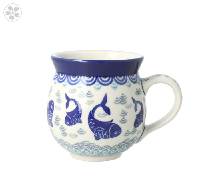 Kubek z uchem w klasycznym kształcie. Produkt ręcznie formowany i dekorowany w Zakładach Ceramicznych Bolesławiec.
