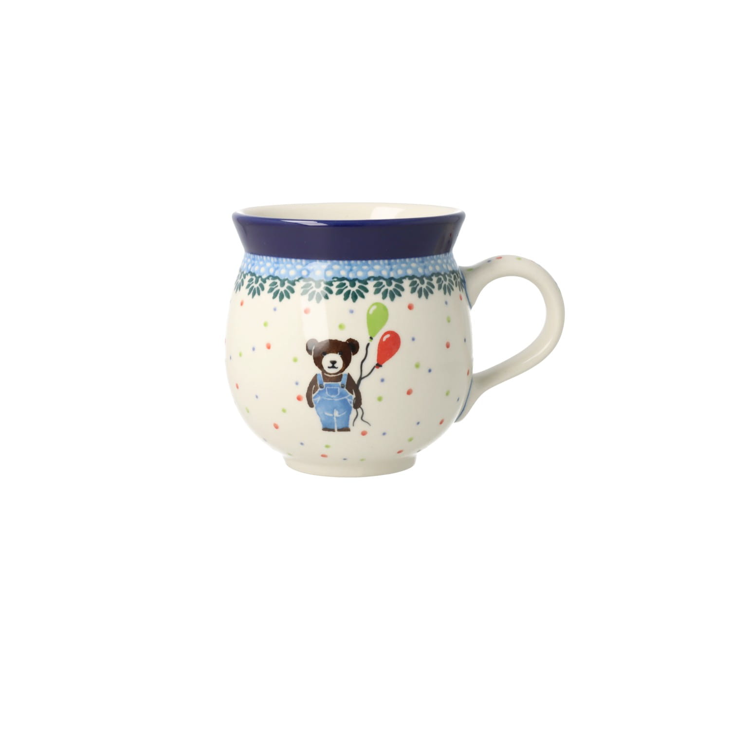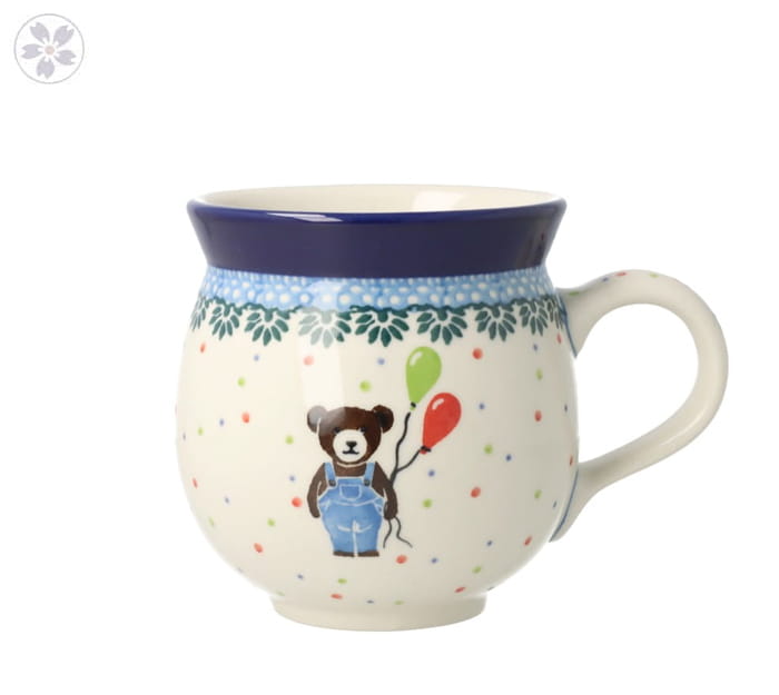 Kubek o pojemności 0,25 litra. Produkt ręcznie formowany i dekorowany w Manufakturze Galia Bolesławiec.