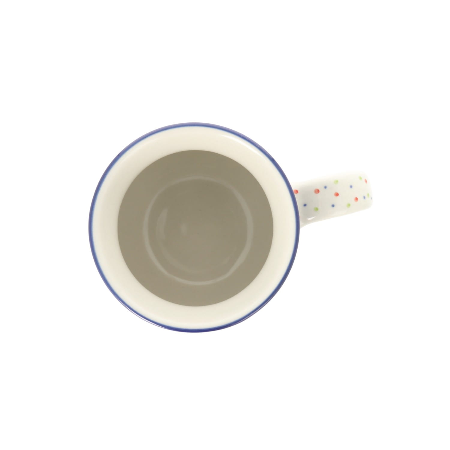 Kubek z uchem, w klasycznym kształcie. Produkt ręcznie formowany i dekorowany w Manufakturze Galia Bolesławiec.