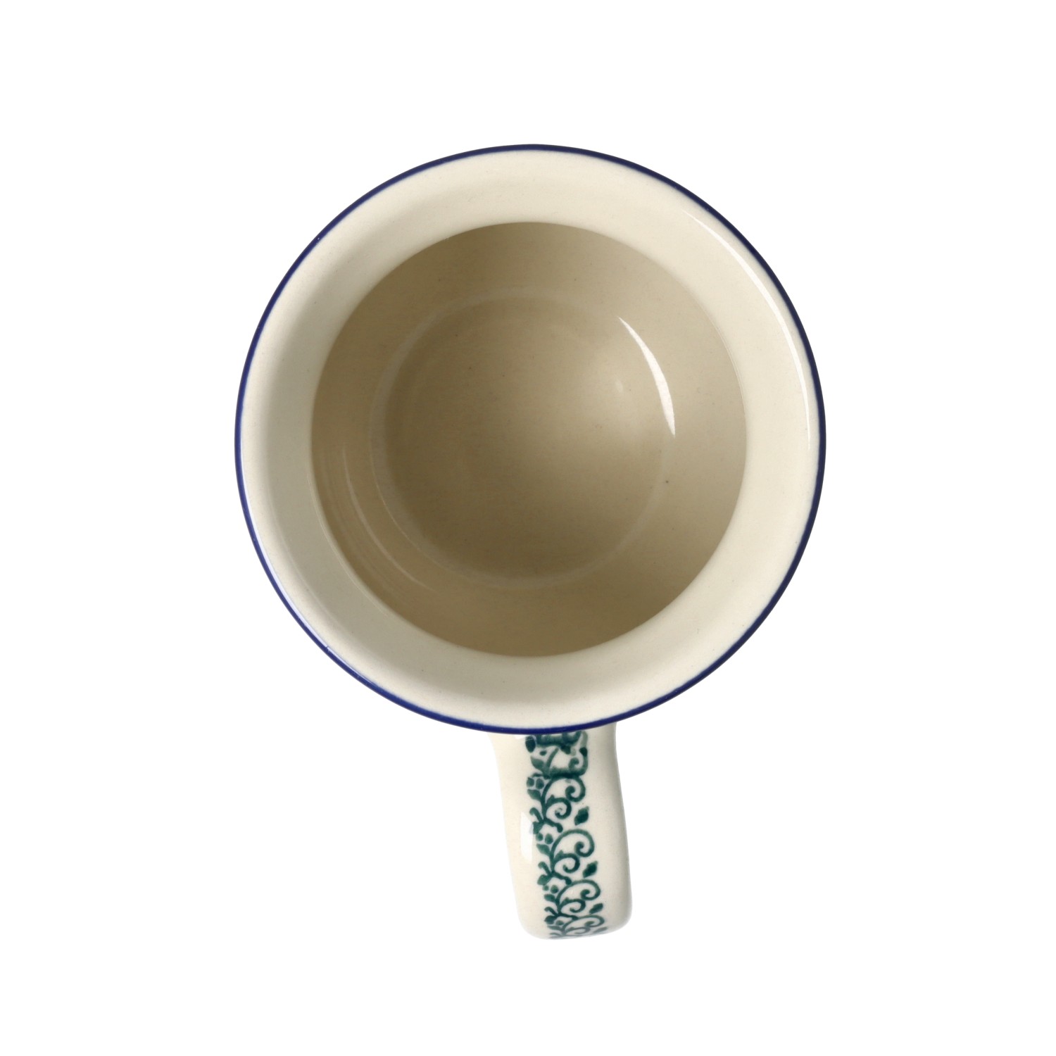 Kubek z uchem w klasycznym kształcie. Produkt ręcznie formowany i dekorowany w Zakładach Ceramicznych Bolesławiec.