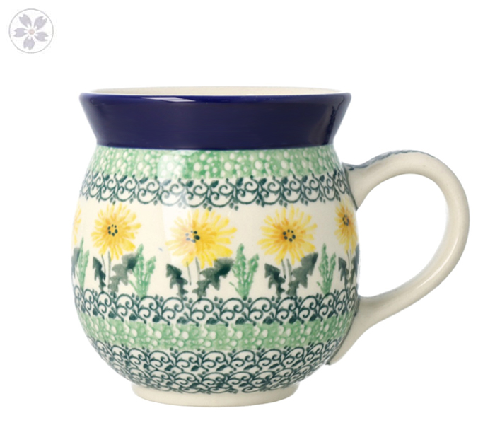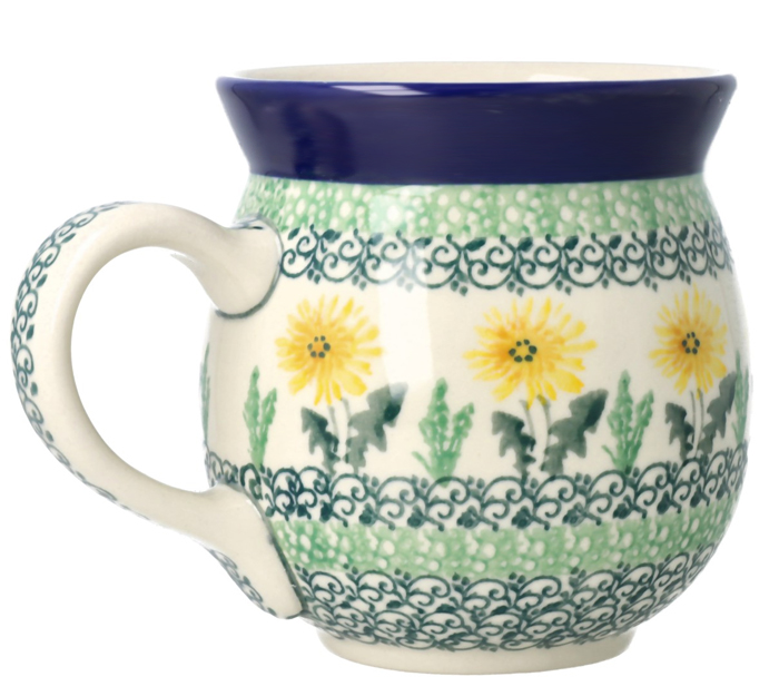 Pękaty kubek z uchem. Produkt ręcznie formowany i dekorowany w Zakładach Ceramicznych Bolesławiec.
