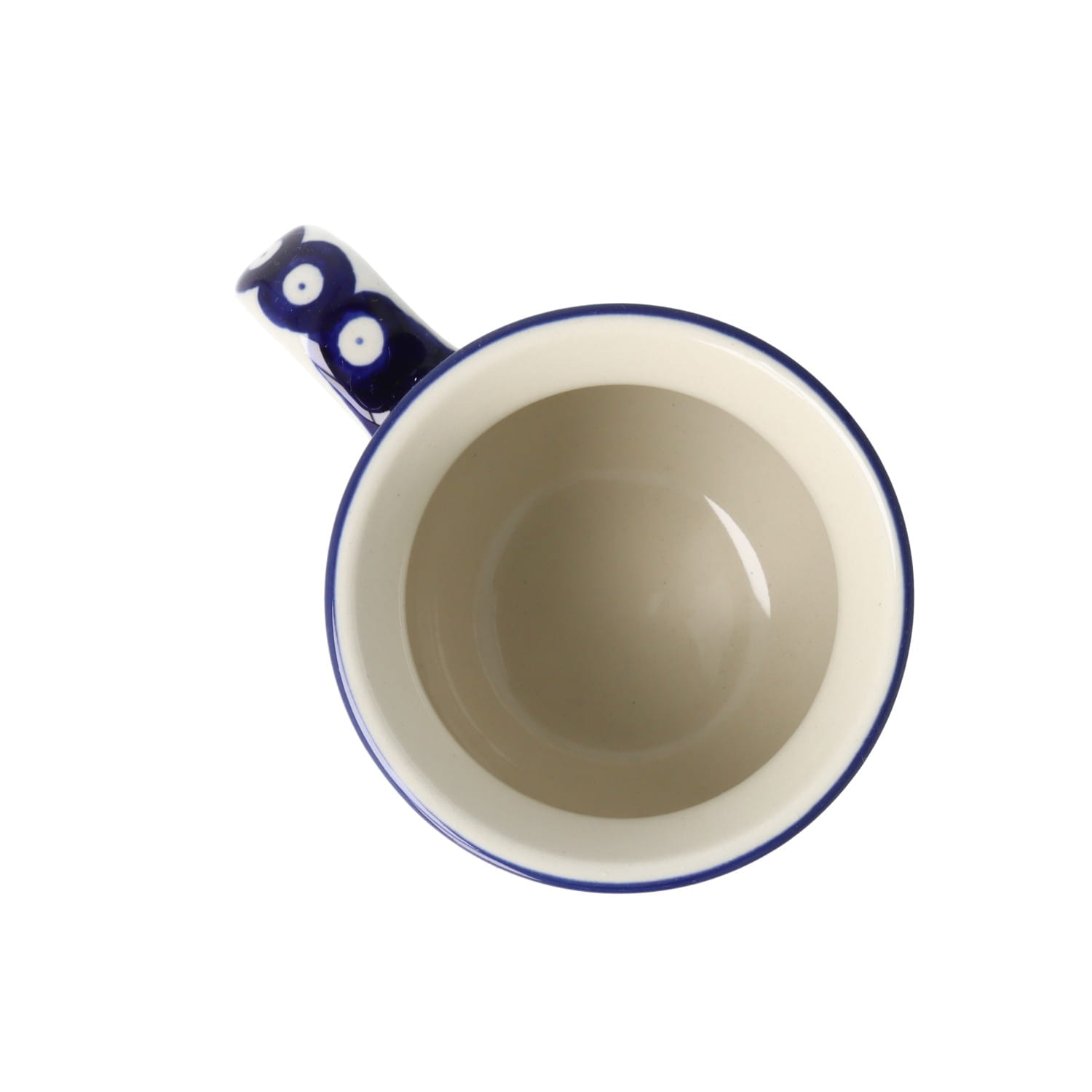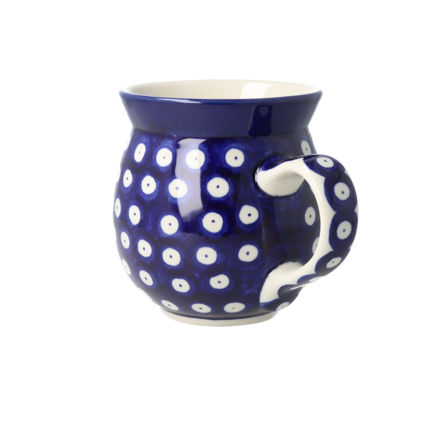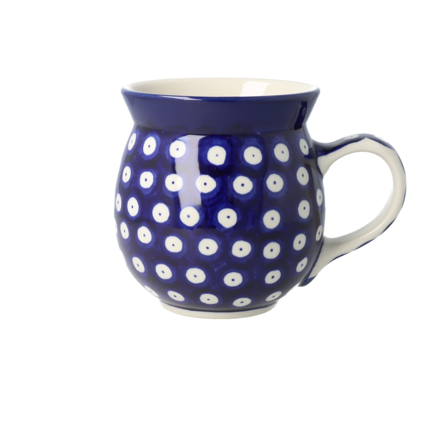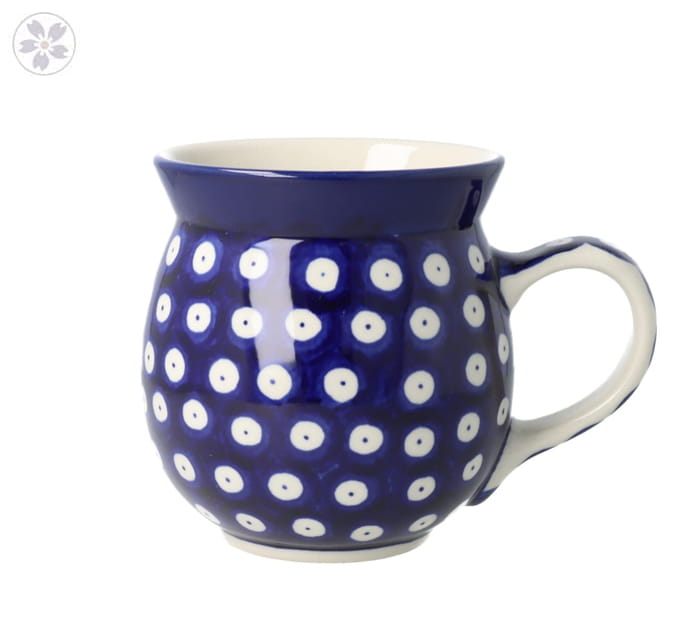 Klasyczny kubek z profilowanym uchem. Produkt ręcznie formowany i dekorowany w Ceramice Artystycznej S.R.A. Bolesławiec.