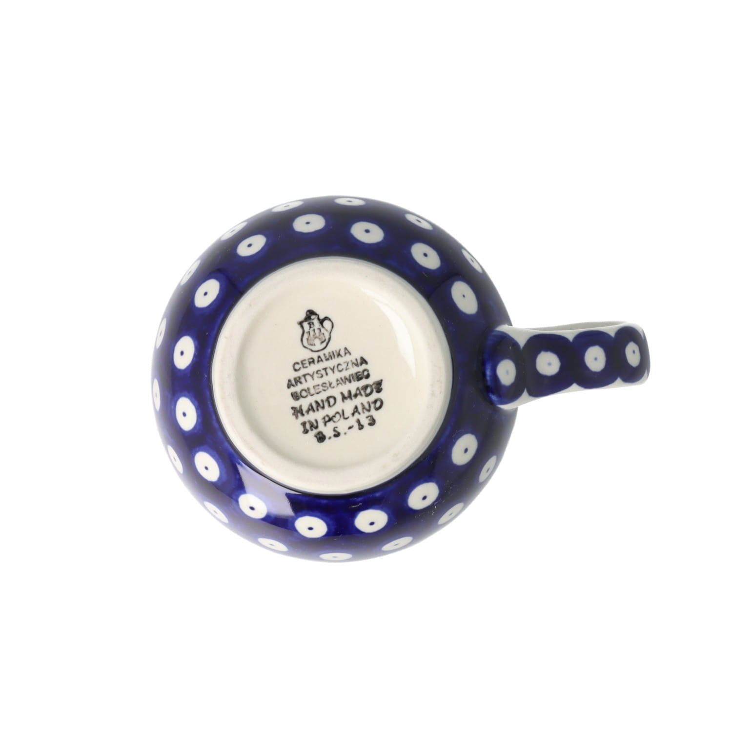 Mały kubek "czeski" z profilowanym uchem. Produkt ręcznie formowany i dekorowany w Ceramice Artystycznej S.R.A. Bolesławiec.