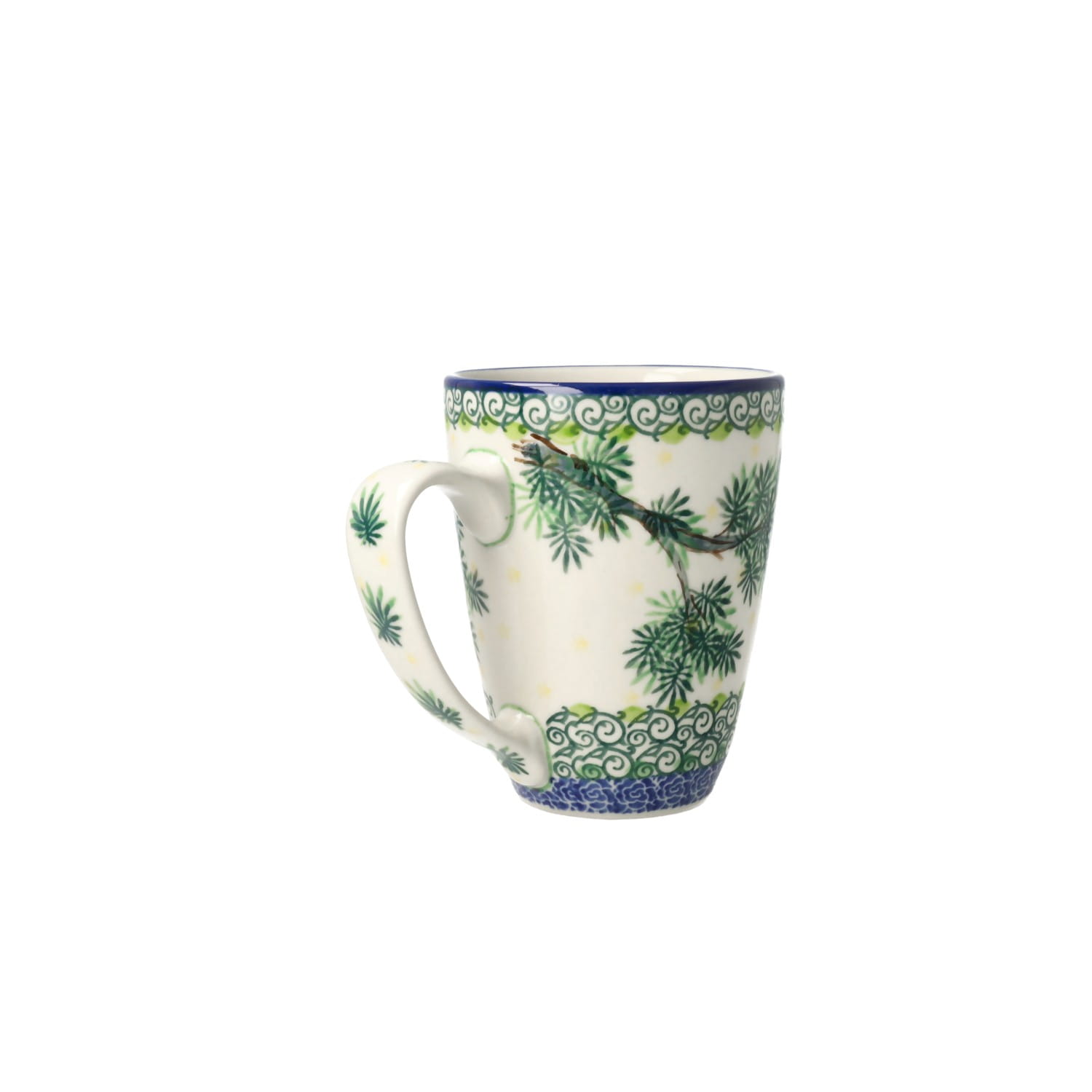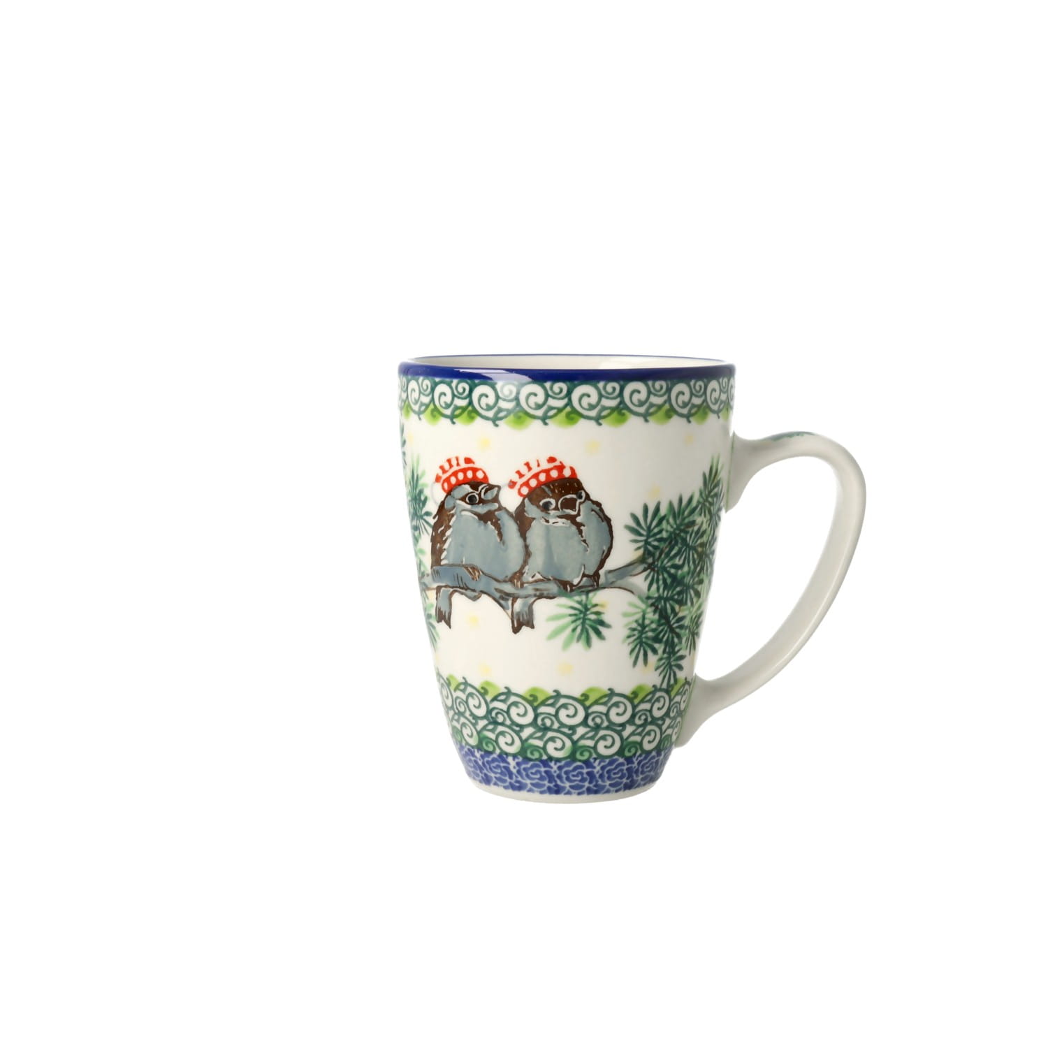 Duży kubek z motywem świątecznym. Produkt ręcznie formowany i dekorowany w Manufakturze Galia Bolesławiec.